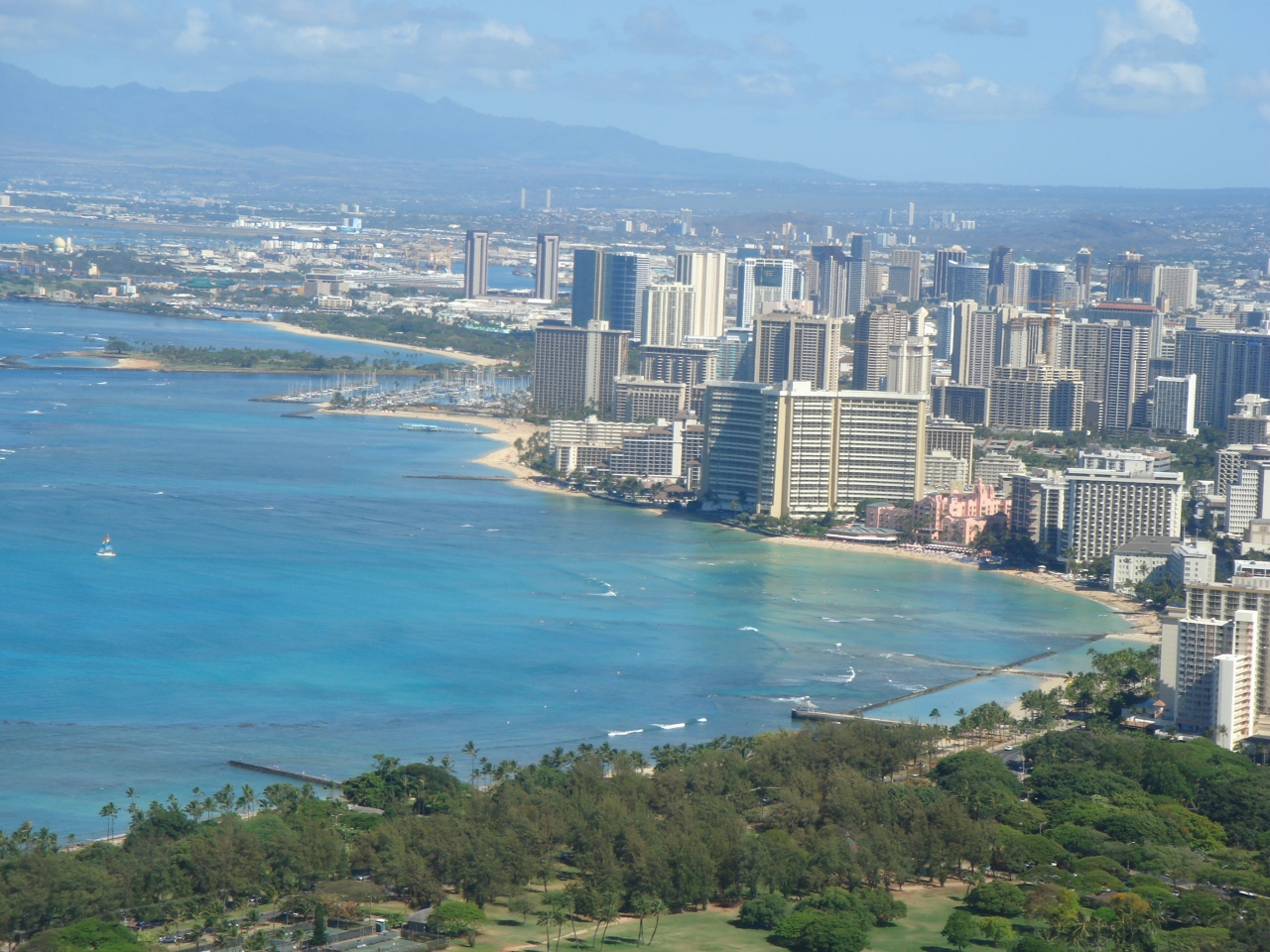 ワイキキからバスに乗って、ダイヤモンドヘッドへハイキングに行きました。ハワイのさらりとした気候の中でのハイキングは爽快そのもので、暑いのに汗が出ない!という日本では考えられない条件で、気軽な山遊びが体験できました。そして頂上からの景色は当然最高です!ゆっくり登って3時間弱、といったところでした。