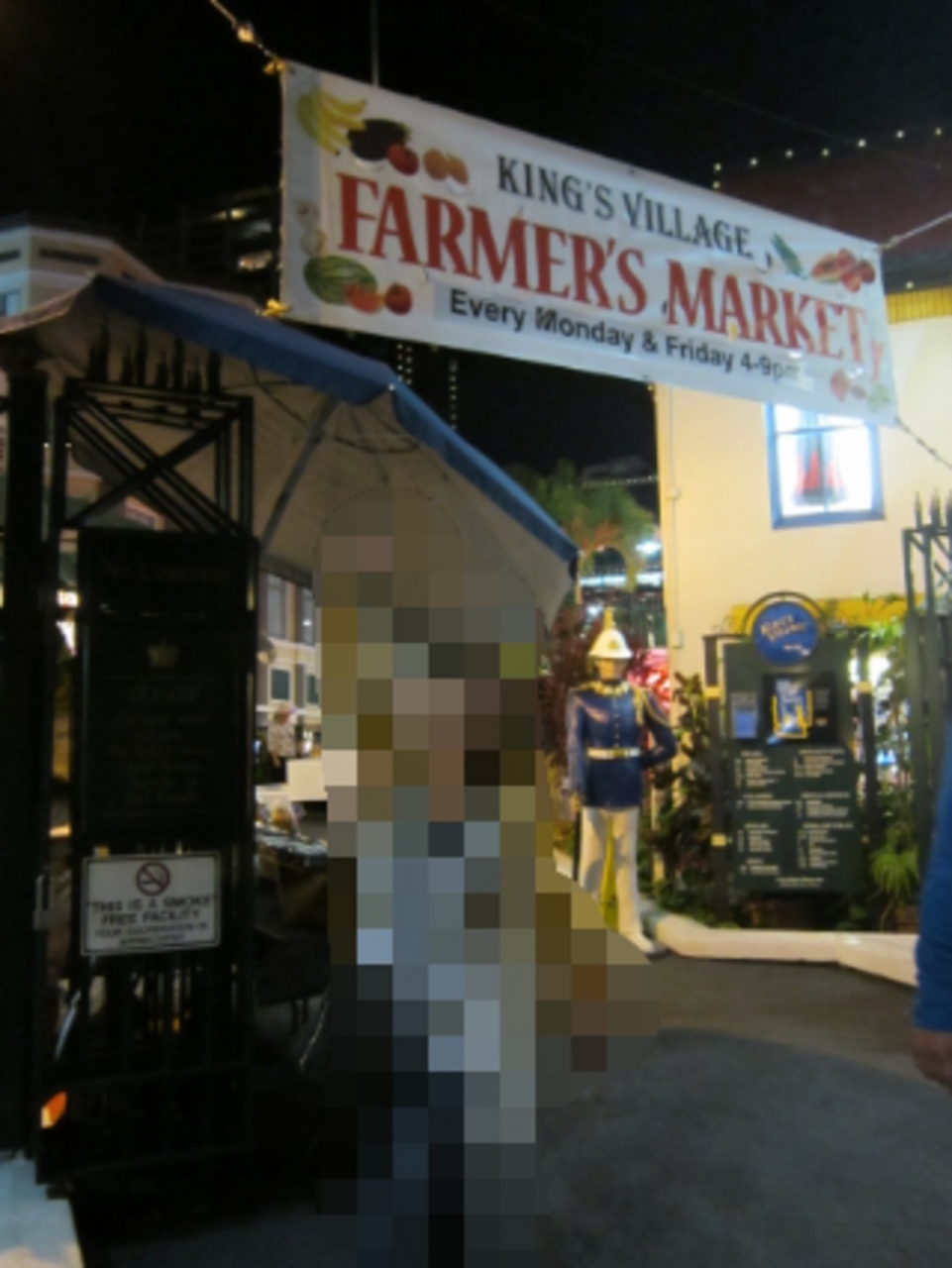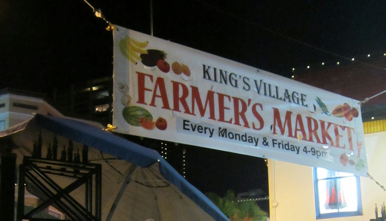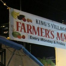 ワイキキの真ん中にある、普段は余り用事がないキングスビレッジですが、たまたま通りかかったら、ファーマズマーケットのサインが!