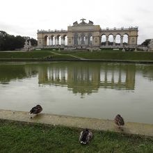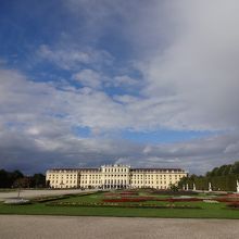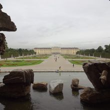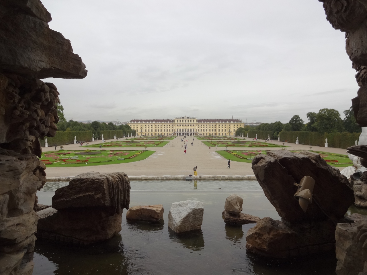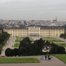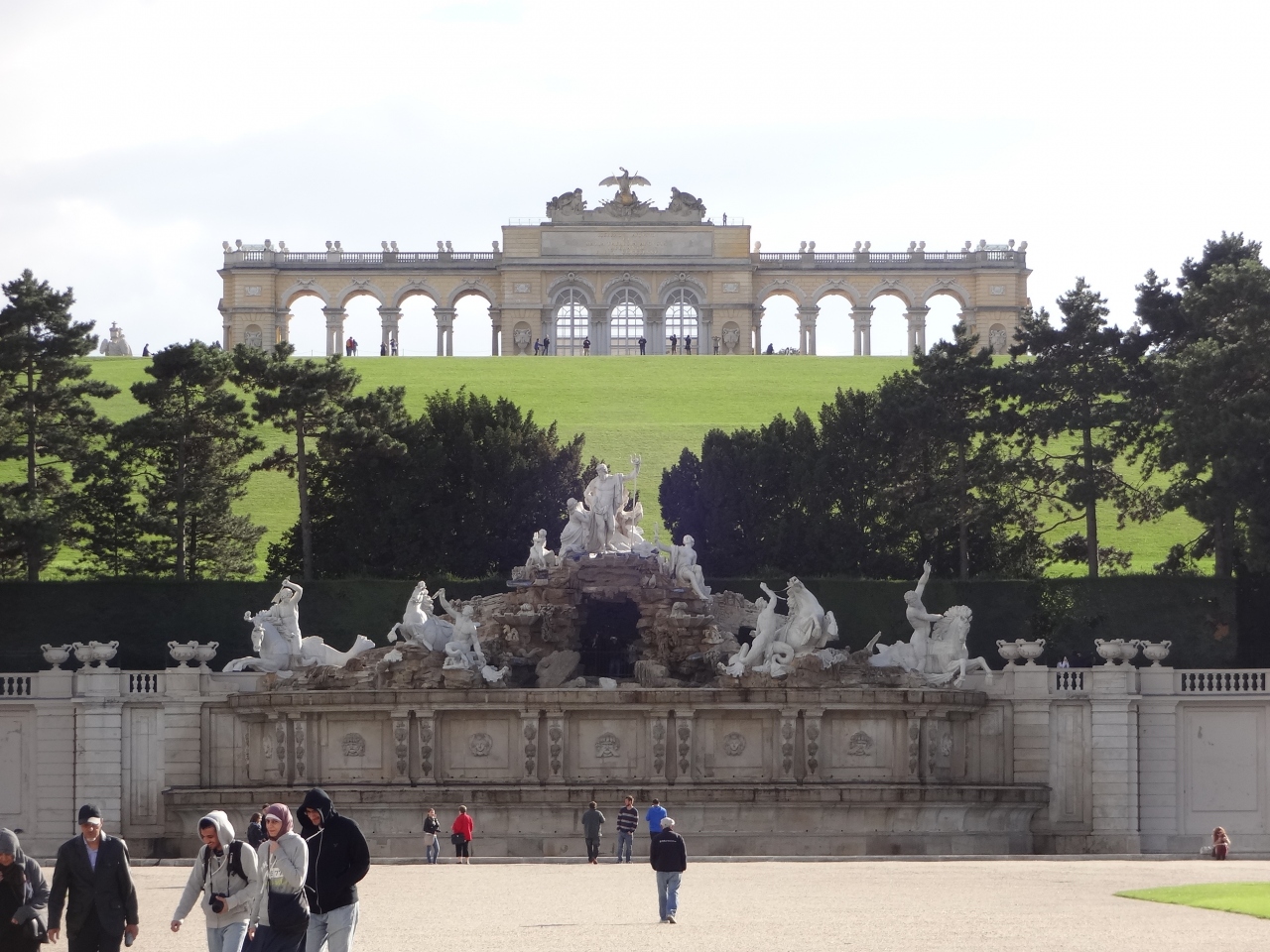 シェーンブルン駅の隣の駅からバスに乗り、グロリエッテ脇の通路から入場しました。丘の上から見るシェーンブルン宮殿は素晴らしかったです。宮殿前の庭園には色とりどりの花が植えられていました。