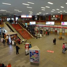 バスターミナルの中には飲食店や土産物屋、寂れ気味ですがデパートの中にありそうな服屋・アクセサリー屋など、いろいろなお店が入っています。外に出た所には郵便局も併設されています。