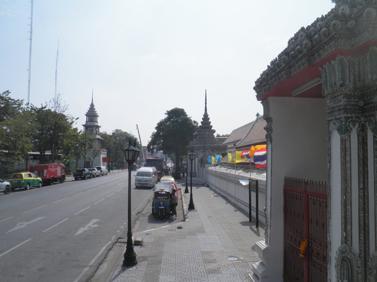 久しぶりにバンコクで3輪車のトゥクトゥクに乗りました。 ワット・ポーからワット・プラケオまでの短距離ですが、日影があまりない所なので割高の料金でも利用しました。窓のない乗り物なので、他の乗り物の排気ガスをもろに浴びますので、ハンカチで口を押えてる人もいました。