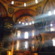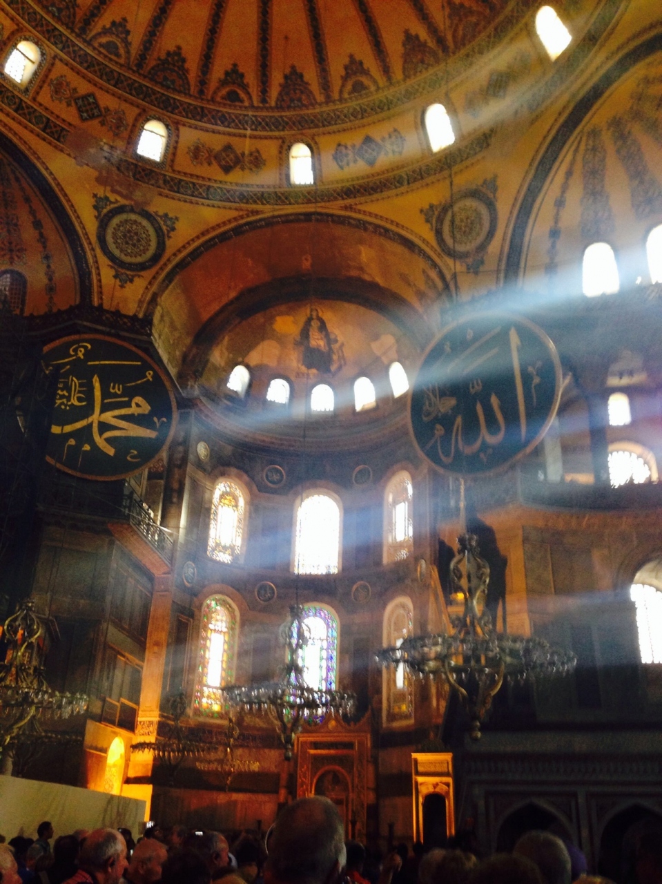 やっと入れたアヤソフィア内は一部修復中でしたが、神々しい光が天井の窓から注ぎ、光の線がたくさんあり、とても美しかったです。