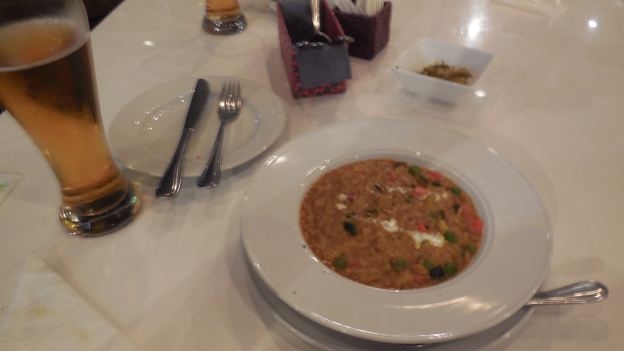 お客さんも駐在員がほとんどといった感じで出張者だけで来ると少々違和感がありますが、お勧めです。ミネストローネとパスタを頼みました。同行者は生牡蠣に舌鼓を打っていました。