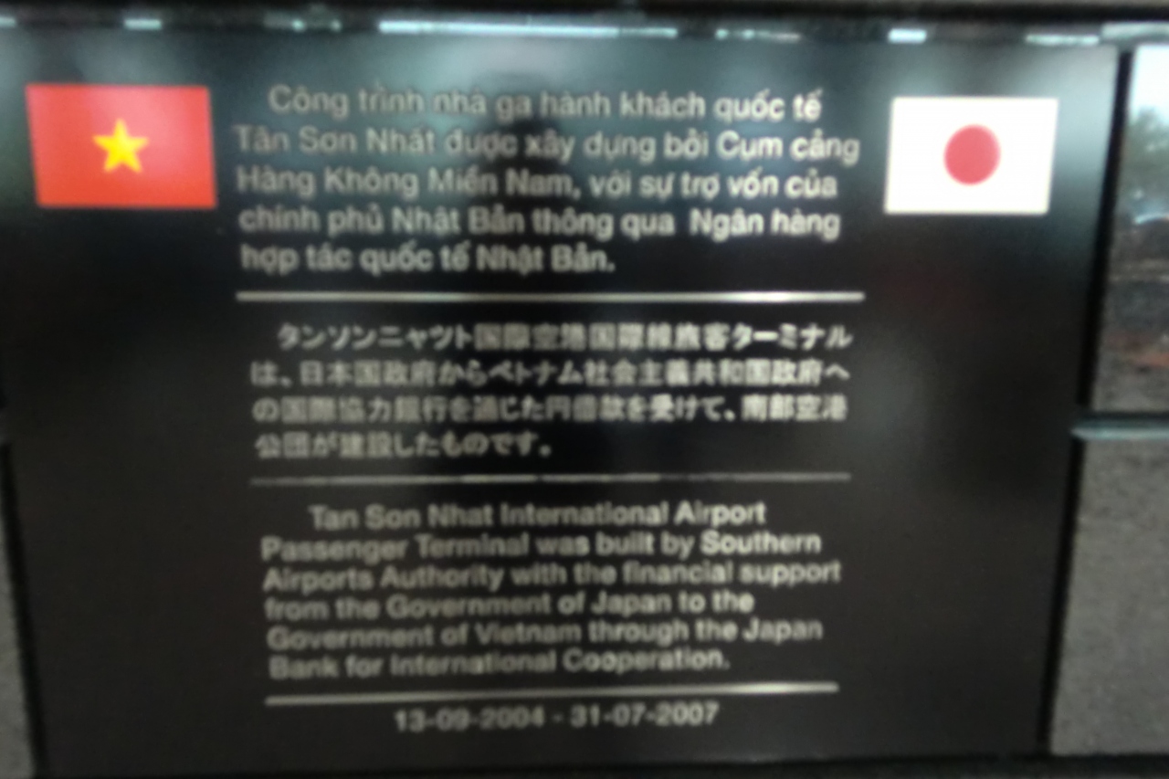 新国際線ターミナルは,日本のODAにより建設されたそうで,到着フロアには石碑があり,目に留まりました。