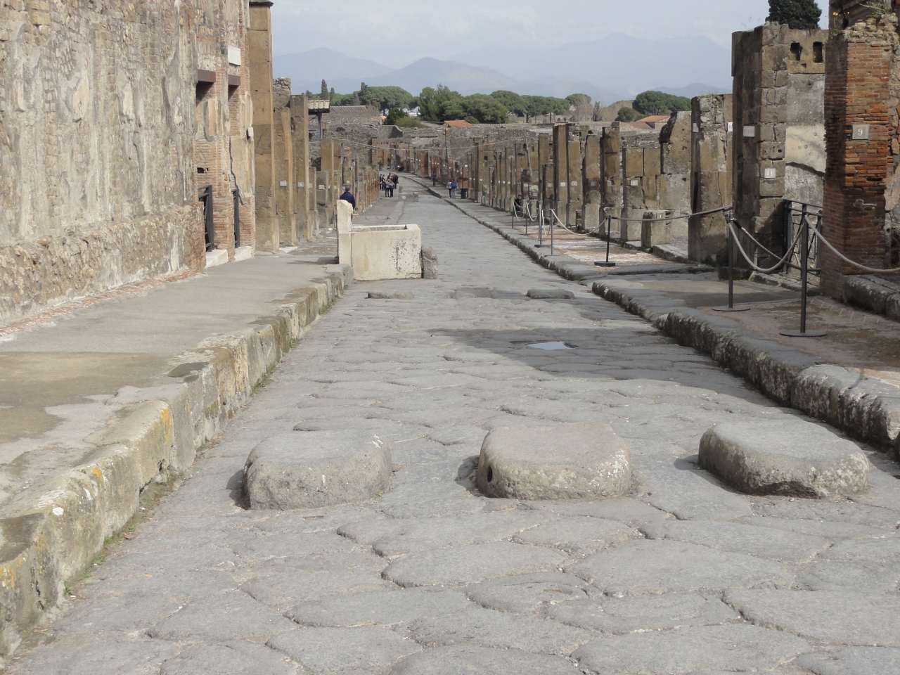 ポンペイ遺跡で街の南側にある東西を結ぶ街路です。マリーナ門からフォロ広場を通り円形競技場方面までつながっています。路面は大きな石で出来ており、雨が降っても馬車が通ってもぬかるみにならないように出来ています。ところどころ歩行者が横断出来る飛び石もあり良く考えて作られています。