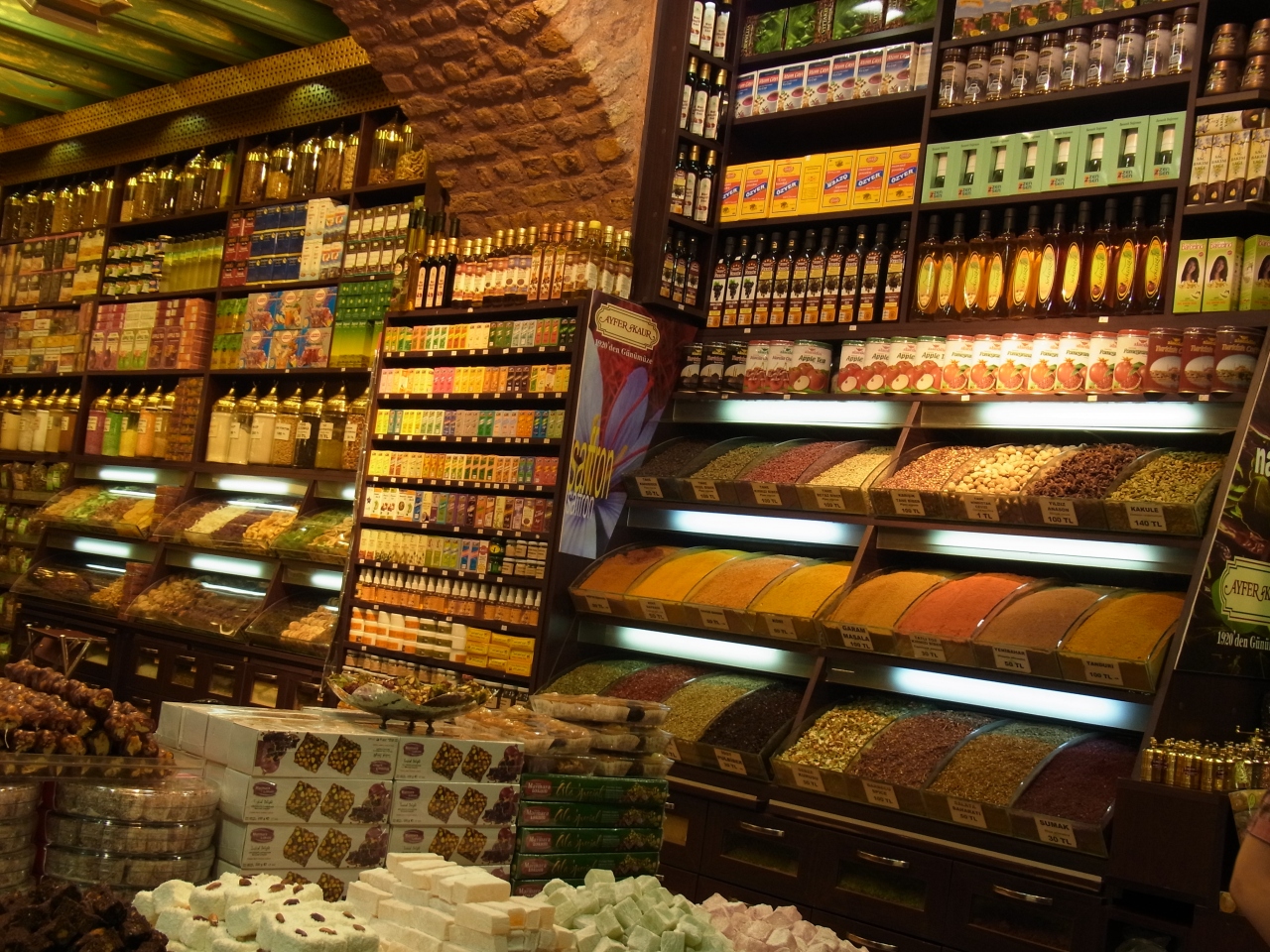 イエニ・ジャーミイの横に入口があって、エジプシャン・バザールの案内標識も出ているので、わかりやすい。中に入ると一種独特のスパイスの臭いがあり、いかにも中東のバザールといった感じ。スパイス以外にもお土産ものや乾物などいろいろな物が売られている。人も多く、活気があるが、なかなか買うまでには勇気がいる。ぶるぶら歩いて雰囲気を感じるのが一番無難。