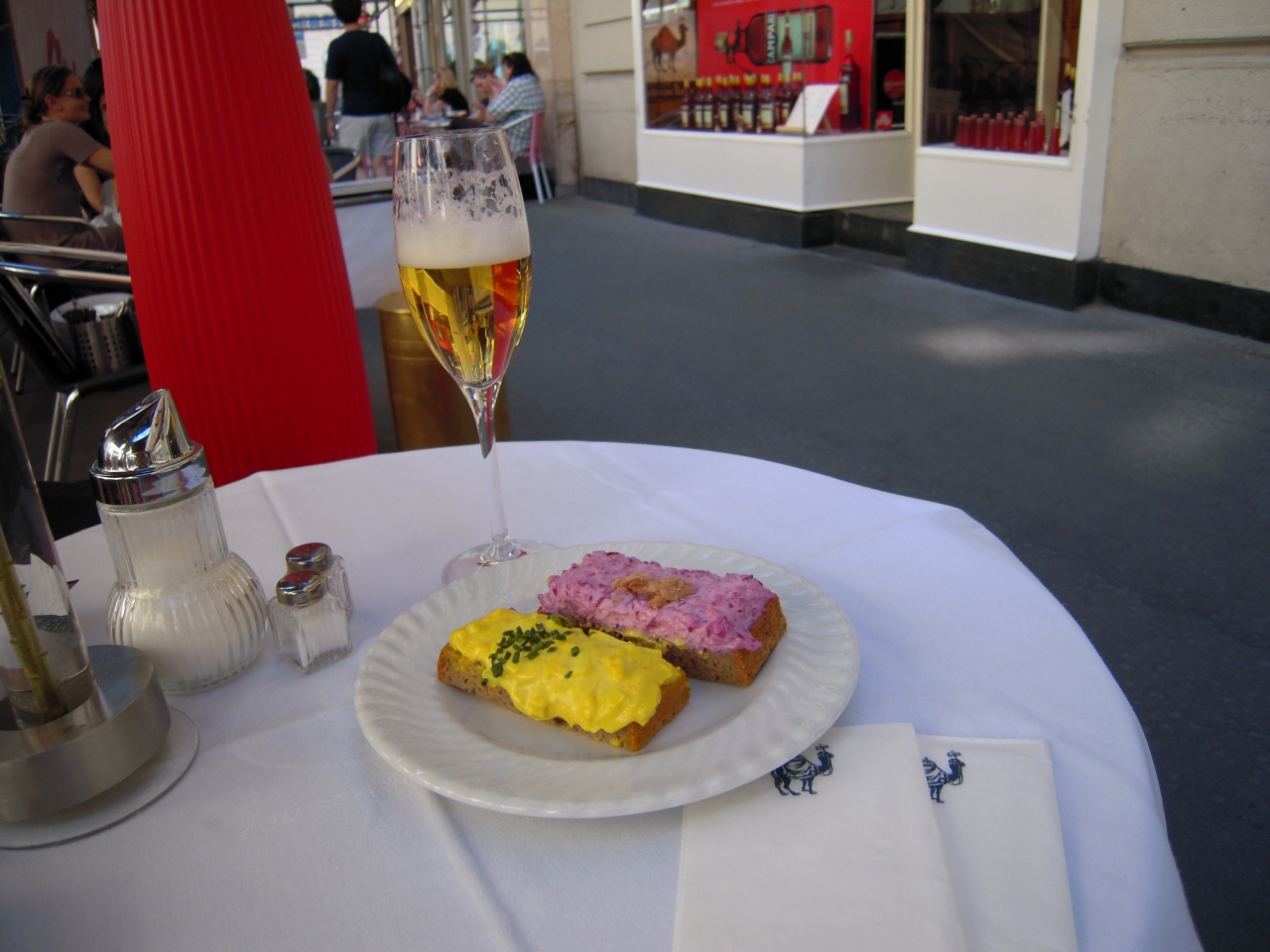 ウィーン市内散策中に小腹がすいたので、オープンサンドを目当てにこの店にきました。ガイドブックにも載っていたので有名なお店のようです。オープンカフェの外のテーブルでビールと一緒においしく頂きました。市内を散策して疲れていたのでゆっくり休めてよかったです。