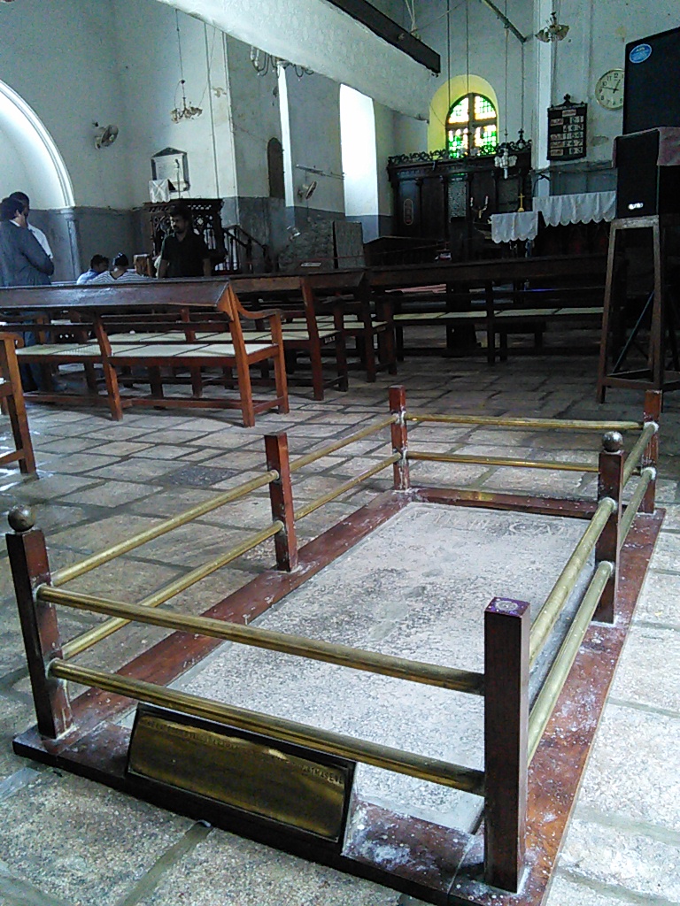 ヴァスコ・ダ・ガマの墓が教会内の一画にあります。 ヴァスコ・ダ・ガマと言えば大航海時代に活躍したポルトガルの探検家、教科書に載っていました。インドのコーチンで死去していたんですね。そんな歴史上の人物が実際に存在したことを実感させてくれるロマン溢れる教会です。