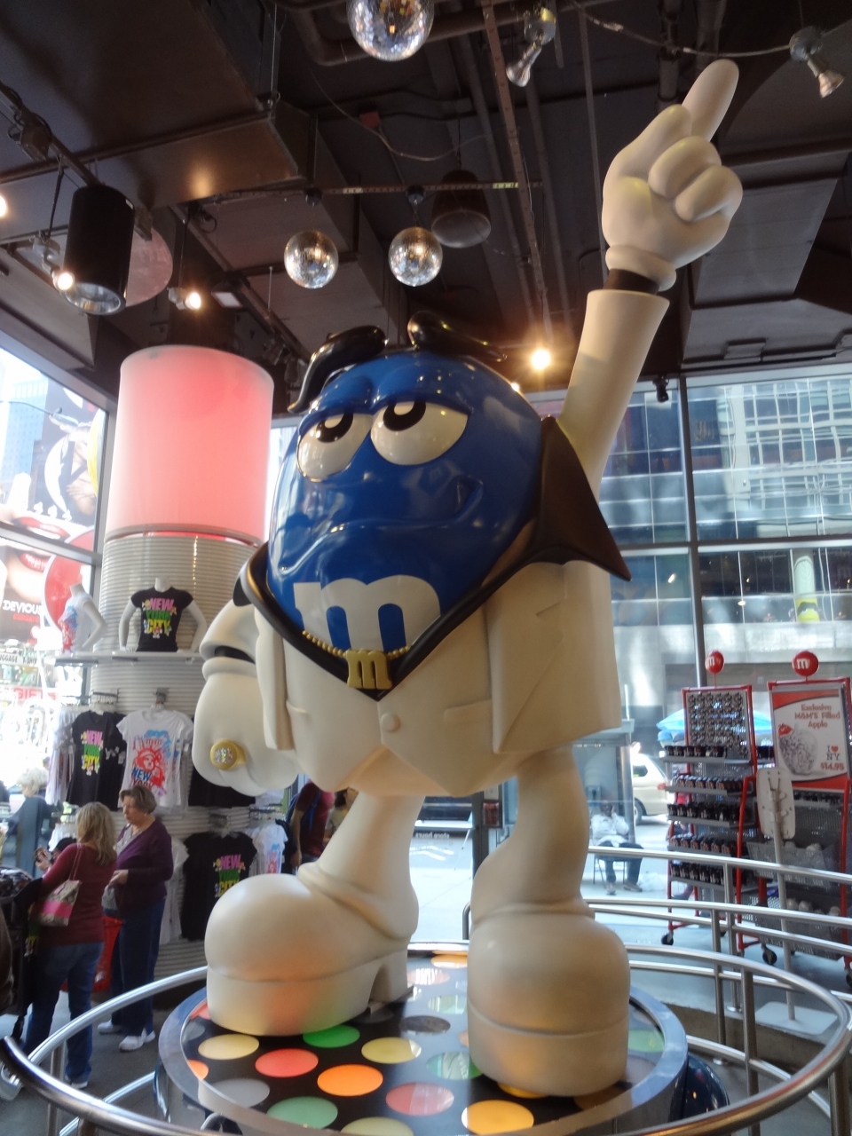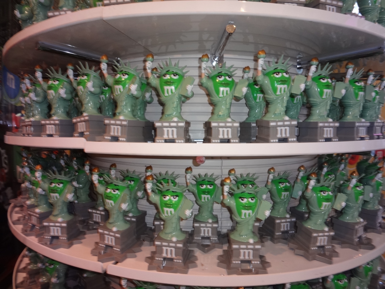 カラフルなM&Mチョコレートのキャラクタが店内のあちこちにいる楽しい店でした。ニューヨーク土産をチョコレートにするかと探しに行きましたが、あまりの楽しさに土産探しを忘れたほどでした。自分の好きな色の組み合わせを作ることができるカラフルなチョコレートサーバーがあったり、カメラの前に立つとお薦めの色のチョコを薦めてくれるコーナーがあったりと遊園地のような雰囲気もあり、特に子供が楽しそうでした。