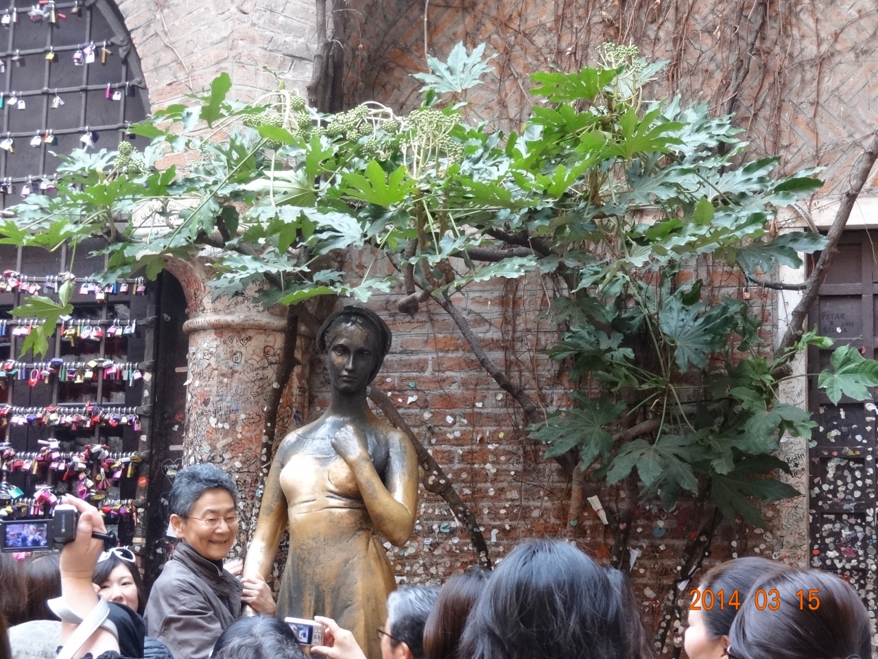 想像していたよりもかなり狭くて、私も含めたくさんの観光客がジュリエットの像と一緒に写真を撮るために並んでいました。