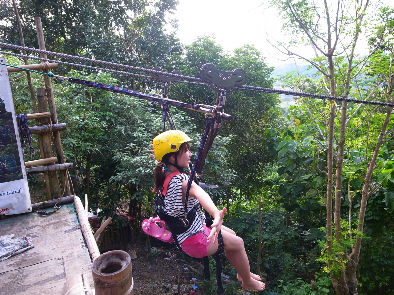 肝心のジップラインですが、思っていたより怖くなくて、むしろ爽快感!