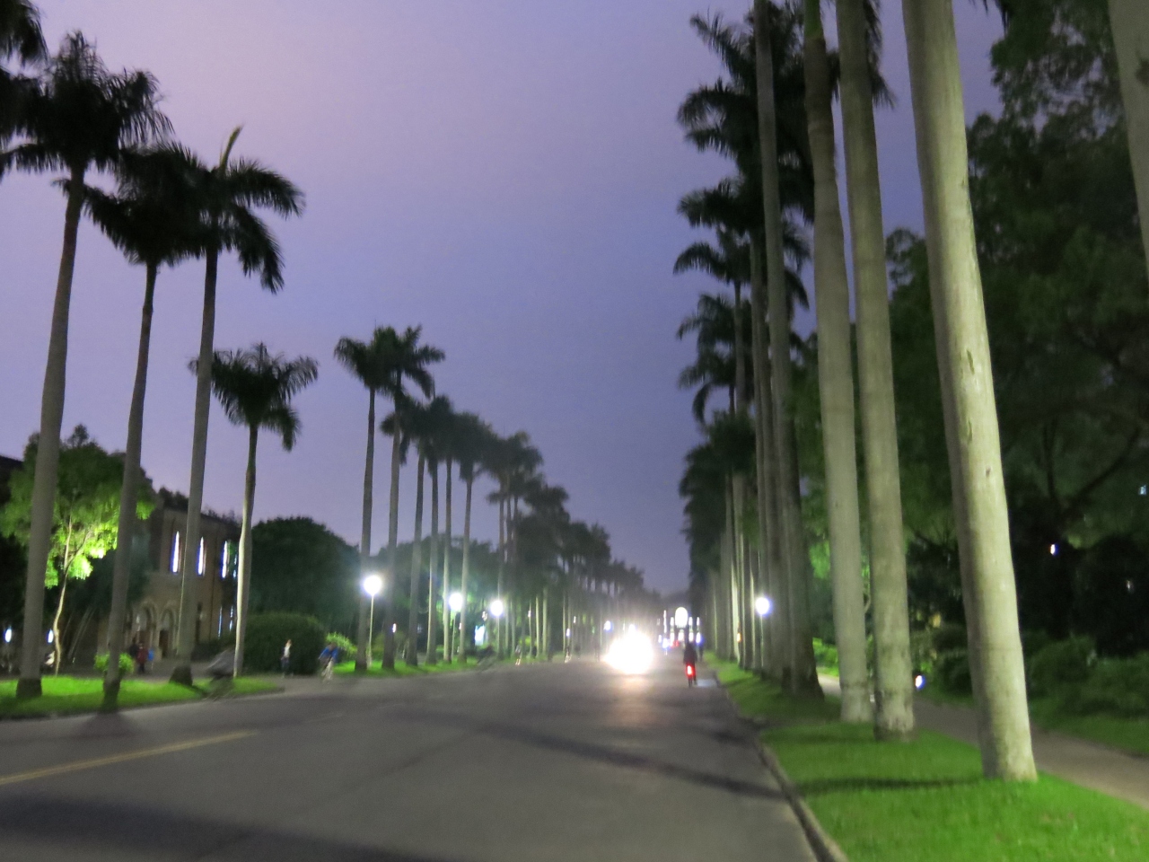 日本統治時代は、台湾国内唯一の大学で、日本の帝国大学の一つでした。当時は京城大学と現在の七帝大を合わせて、九帝国大があったそうです。今もその流れを汲み、キャンパスは日本の旧帝大を彷彿とさせますが、椰子の木がニョキニョキ生えた構内は南国台湾らしいです。学生会館は夜遅くまで学生たちで賑わっていました。