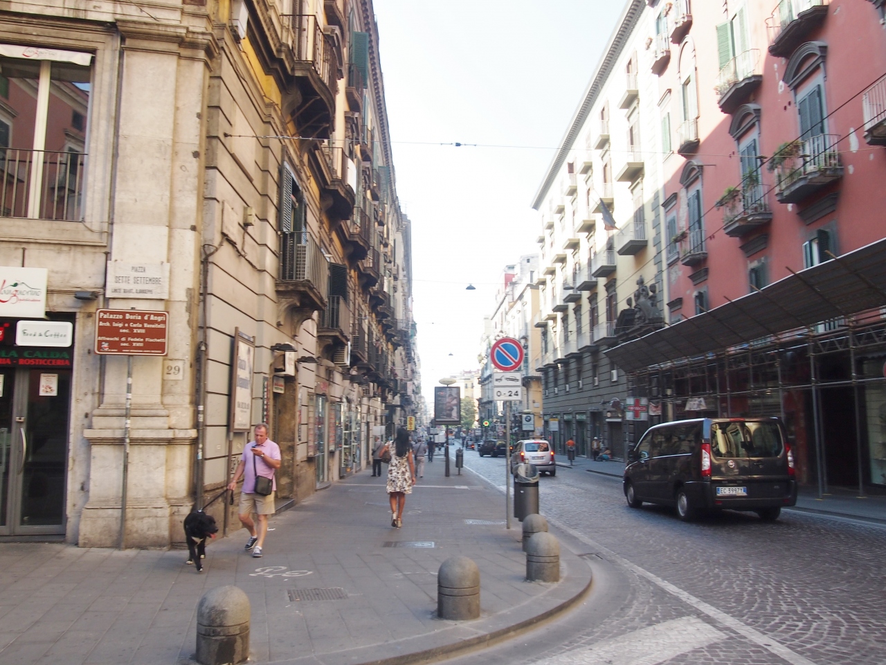 ナポリの下町を南北に貫く通りの1つで、スパッカ・ナポリ観光の入り口になります。ナポリの下町というと、生活感あふれる建物が並んでいる狭い路地裏を思い浮かべますが、トレド通りはその路地裏を繋ぐ、とても広くてお洒落な通りでした。