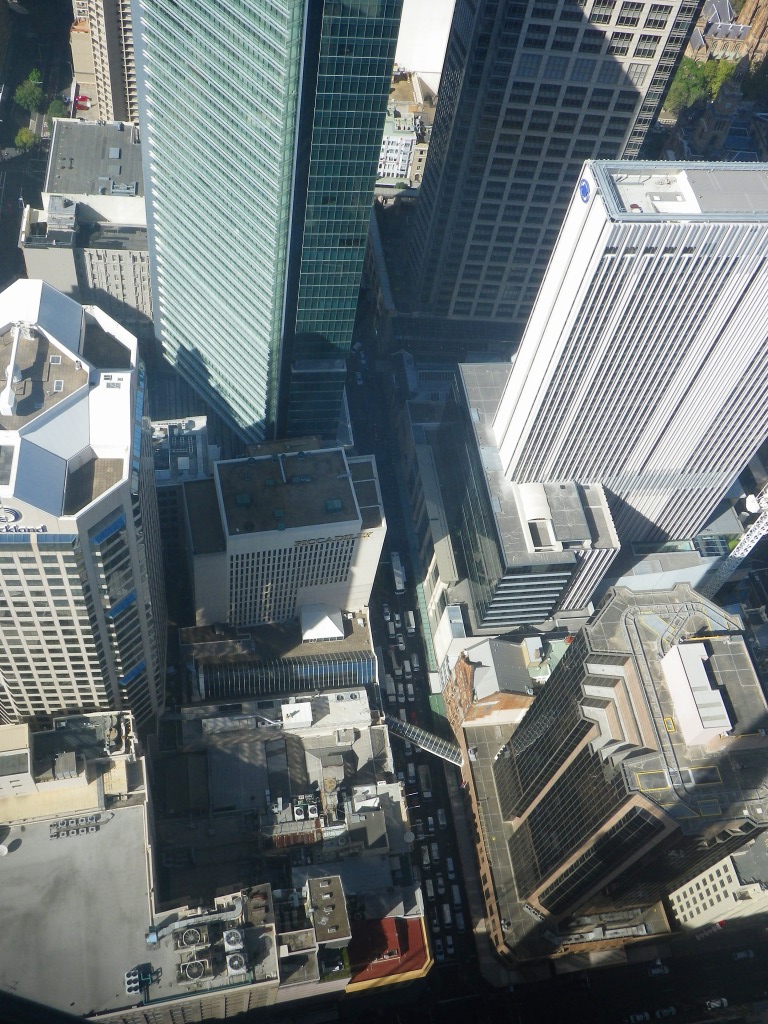 シドニータワーの高さは305m、地上から250mのところにある回転展望台からは360度のパノラマビューを眺めることができ、天気の良い時にはシドニー市内のみならず遠くはブルーマウンテンまで一望できます。
