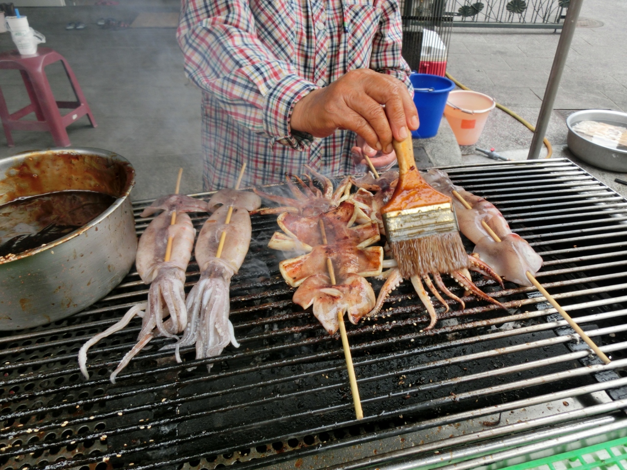 せっかく高雄まで行ったなら、とフェリー(15元)を使って渡ってみました。もともとは台湾本島と繋がっていたので「半島」という名前が残っていますが、今は切り離してしまった為島となっていて南東方面の海底トンネルかフェリーでしか行けません。高雄市街地から行くには地下鉄西子湾から歩いて1キロ(又はタクシー)で港からフェリーを使った方が風情があるのではないでしょうか。島に渡った後は沢山の海産物屋さん(店頭に並んでいるのを指定して調理してもらい店内で食べる)やイカ焼きなどの屋台が軒を連ねています。見て歩くだけでも十分楽しいですね♪お店街を抜けると海岸(砂浜)に出ます。潮風が心地よいですよ☆