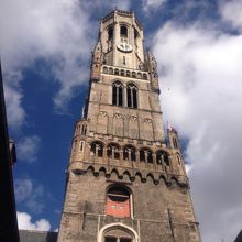 ブルージュでは歩いているときに色んな教会が目印になりますが、その中でもこの鐘楼は広場に面しており、シンボル的な存在です。青空にとても映えてきれいです。