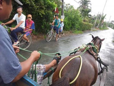 TNKトラベルの場合は、英語ツアーが昼食は一皿定食、小型船のジャングルクルーズがなし。馬車移動なし。その代わり、行きに仏像のある寺と土産物屋に連れて行かれる。