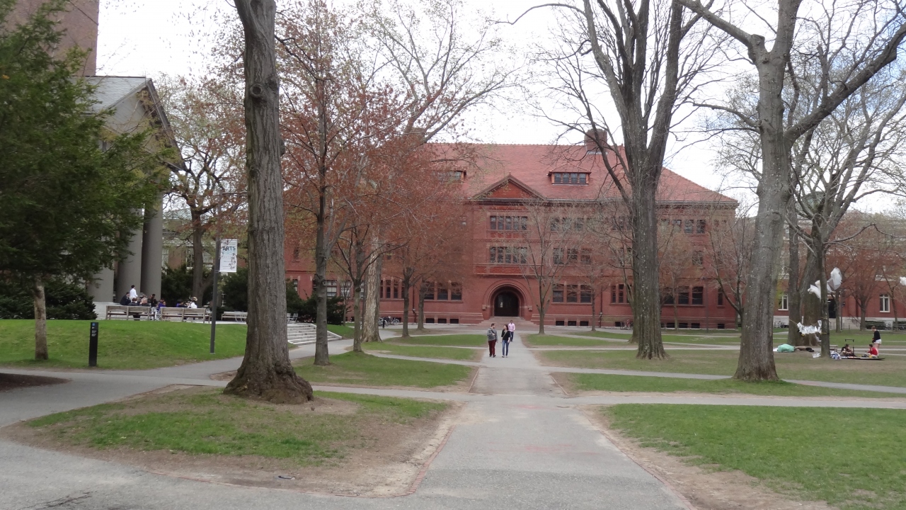 ハーバード大学は、ボストンの郊外、ケンブリッジにあります。かなりの敷地を誇るキャンパスで、ひとつの町が形成されていると言っても過言ではありません。教会あり、記念ホールあり、美術館あり、スタジアムあり。週末にはたくさんの人々が訪れます。家族連れも多いですよ。