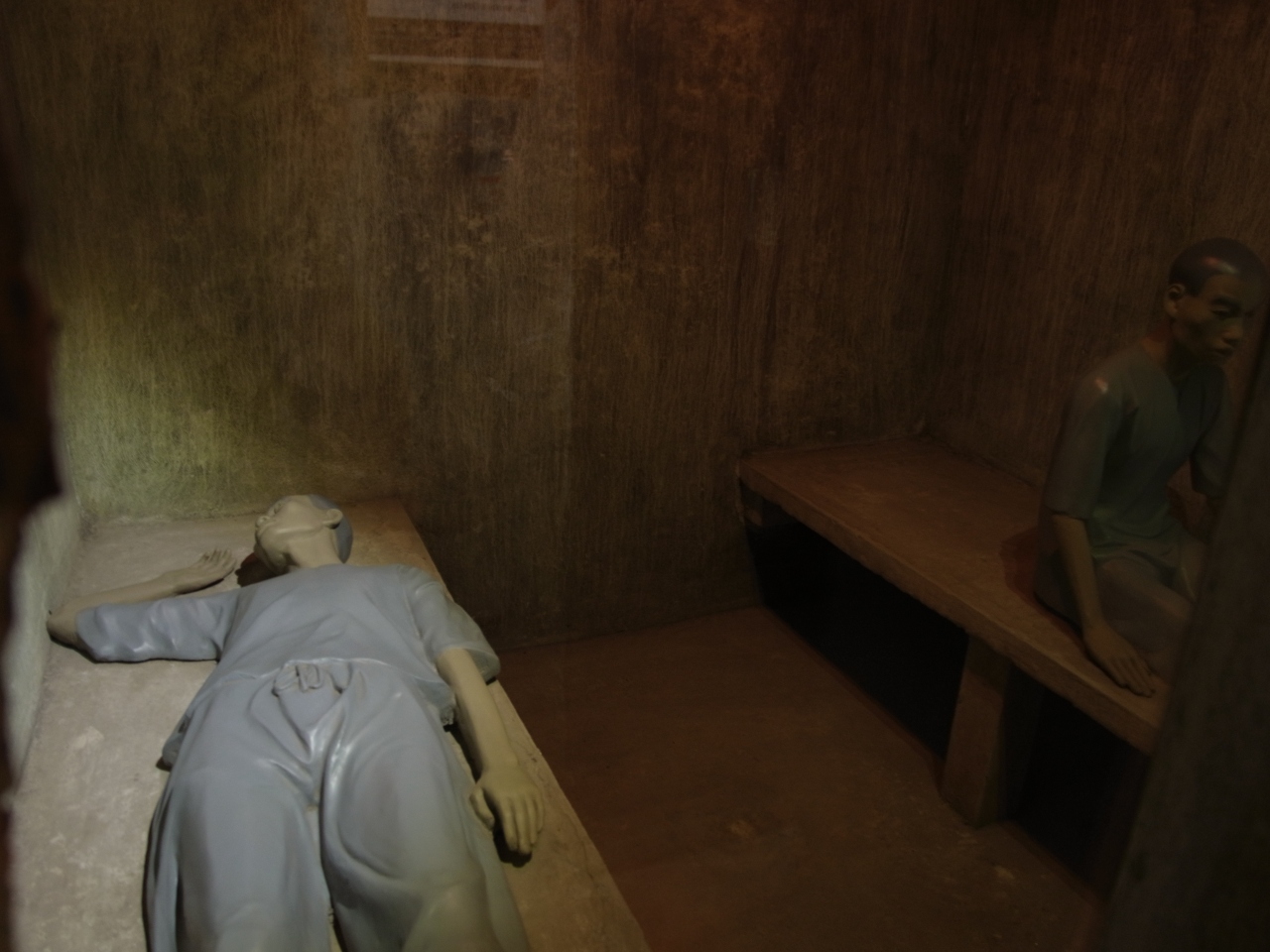 ハノイ市内中心部にあるホアロー収容所。フランス植民地時代から刑務所として使用されていました。植民地時代にはレジスタンス、ベトナム戦争時代にはアメリカ捕虜も収容され、かつてオバマ氏と大統領選で争ったマケイン候補も収容された経験があるとか。ギロチンや独房、拷問道具の展示が生々しかったです。
