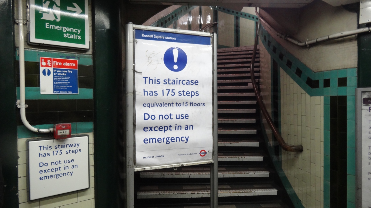 Tubeはちょうどストライキの最中で、規模は縮小されていたとは言え通過駅が多く、乗車中も結構気を使っていました。開業当時はシェルターを兼ねる?プラットホームは地中深くにあり、大抵は大型のエレベーターを待つことになります。階段もありますが、「できるだけ利用しないように」との張り紙があってプレッシャーがかかります(笑)。