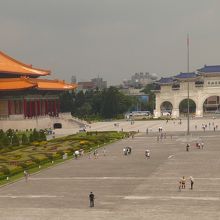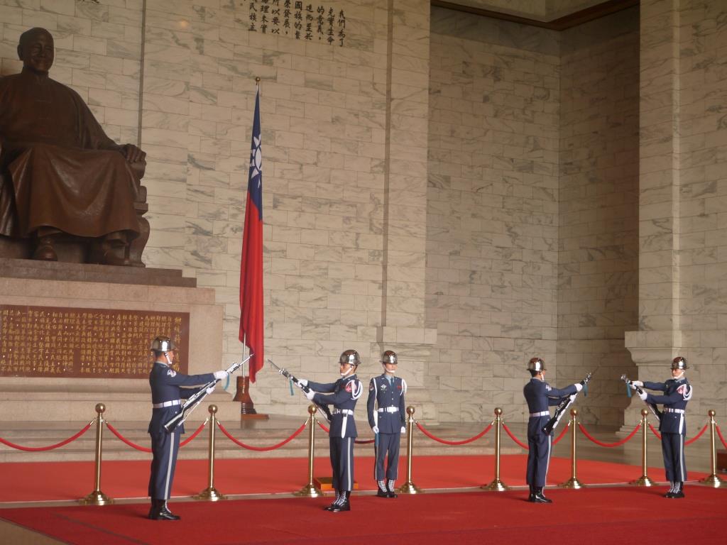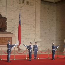 忠烈祠より衛兵の移動距離が短く、人数も少ないですが、同じ場所から見学ができますし、巨大な蒋介石像をバックにけっこう見ごたえありでお勧めです。