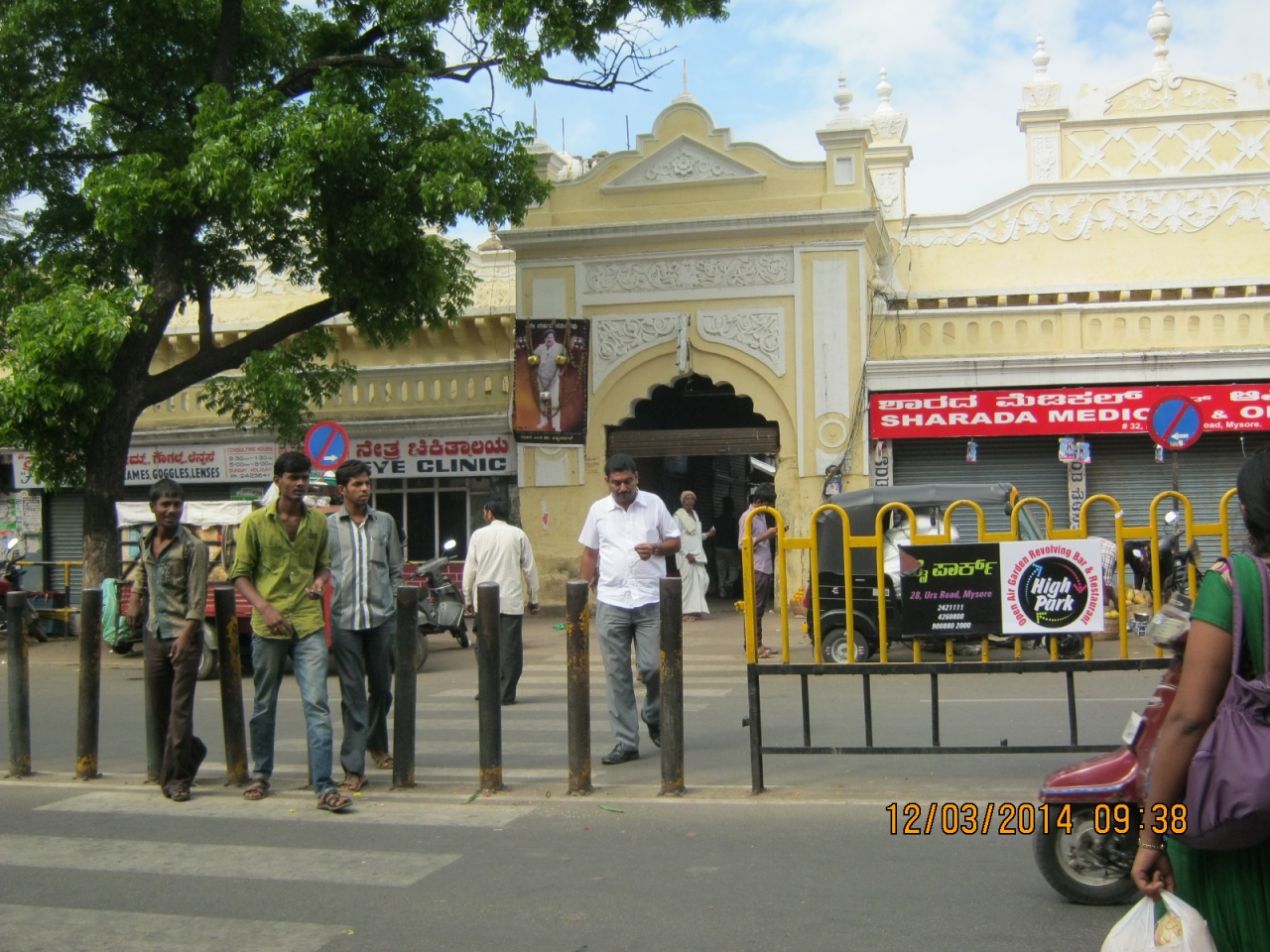 マイソール宮殿の北側にあります。入口前の広場にも露店の店がありにぎわっています。マーケット内は食料品や神々にささげる花や香料などが多く売られています。見て回るだけでも楽しいいです。建物はマイソール王国時代の様子を残しています。