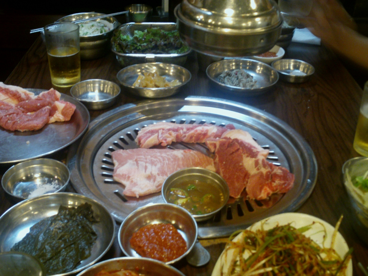 江南にある焼肉屋さん。出国直前に友人の一人がサムギョプサル(豚の3枚肉)ではなくオギョプサル(豚の5枚肉)というのがある!という発見とともにこの店を見つけた。ソウルの中心からタクシーで向かいました。渋滞により1時間以上乗りましたが、料金は日本では考えられないくらい安い。(金額は忘れました。。)オギョプサルをはじめ、色々な上質な肉が格安で食べれる。ここは外してはいけないお店ですね。