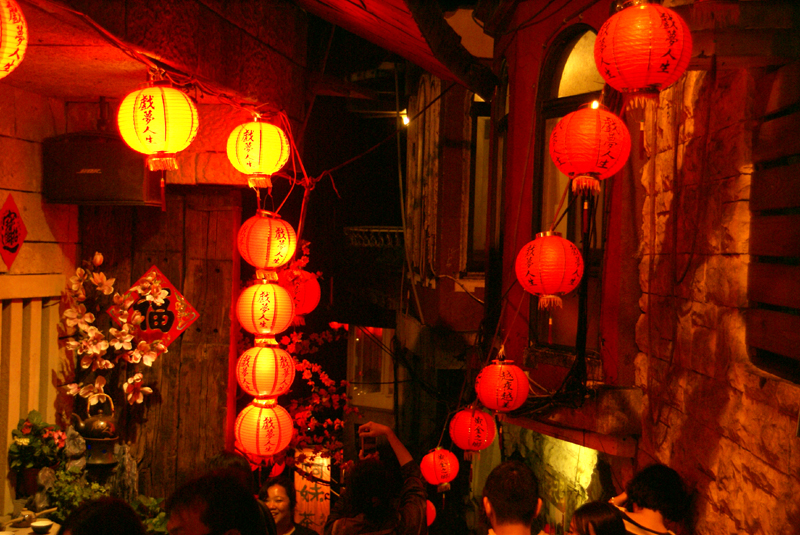 - あんなに狭い商店街に夜遅くまで人が密集していました