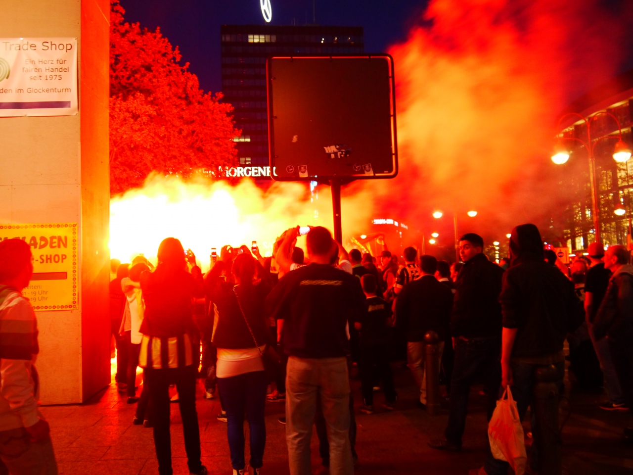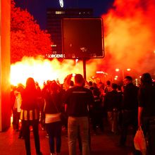 そのかわりにサッカーの熱狂的なファンが何やら盛り上がって発煙筒たいてました…