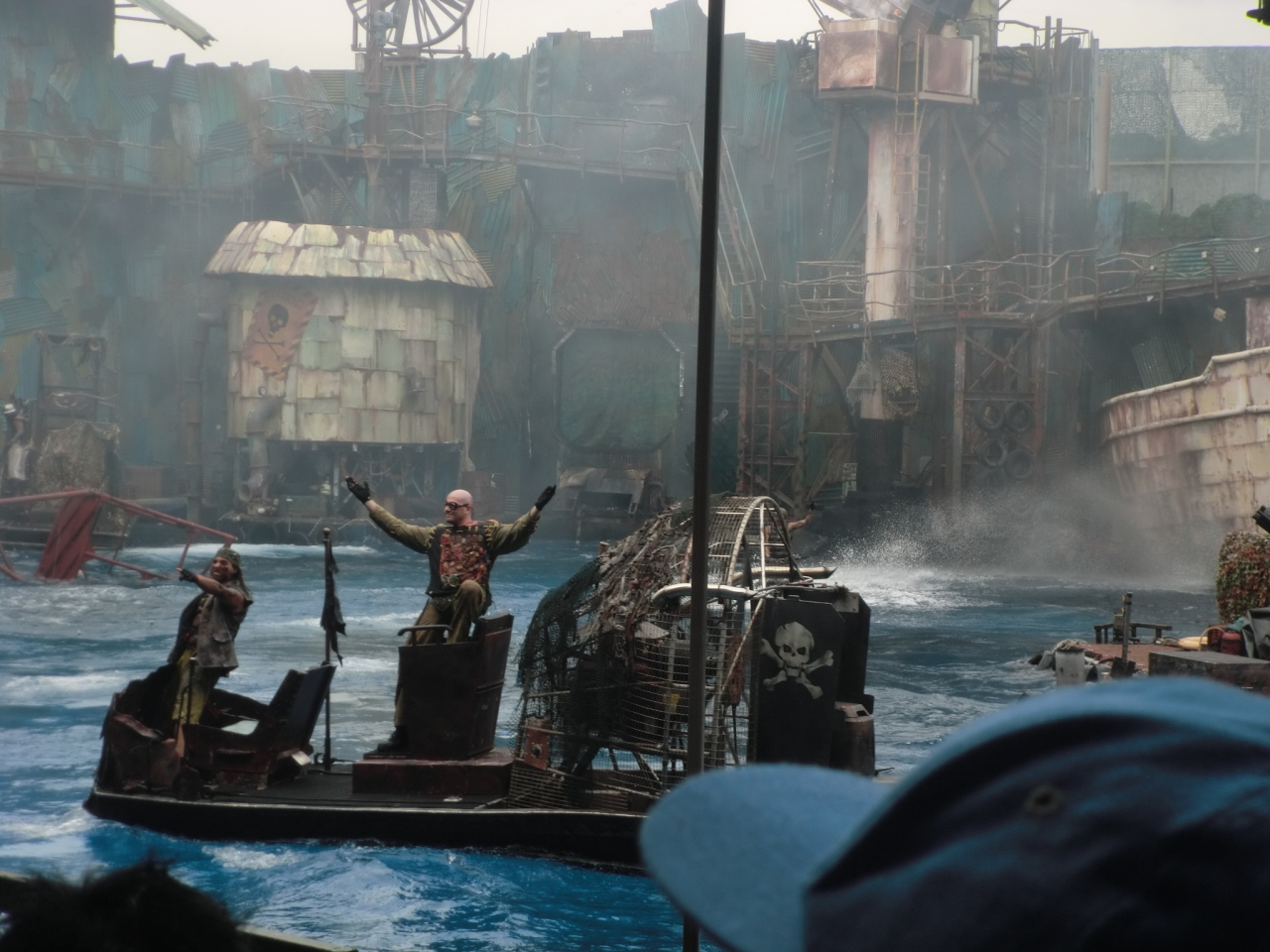 雨合羽を買いました。ウオーターワールドは水にぬれる席、少し湿る、