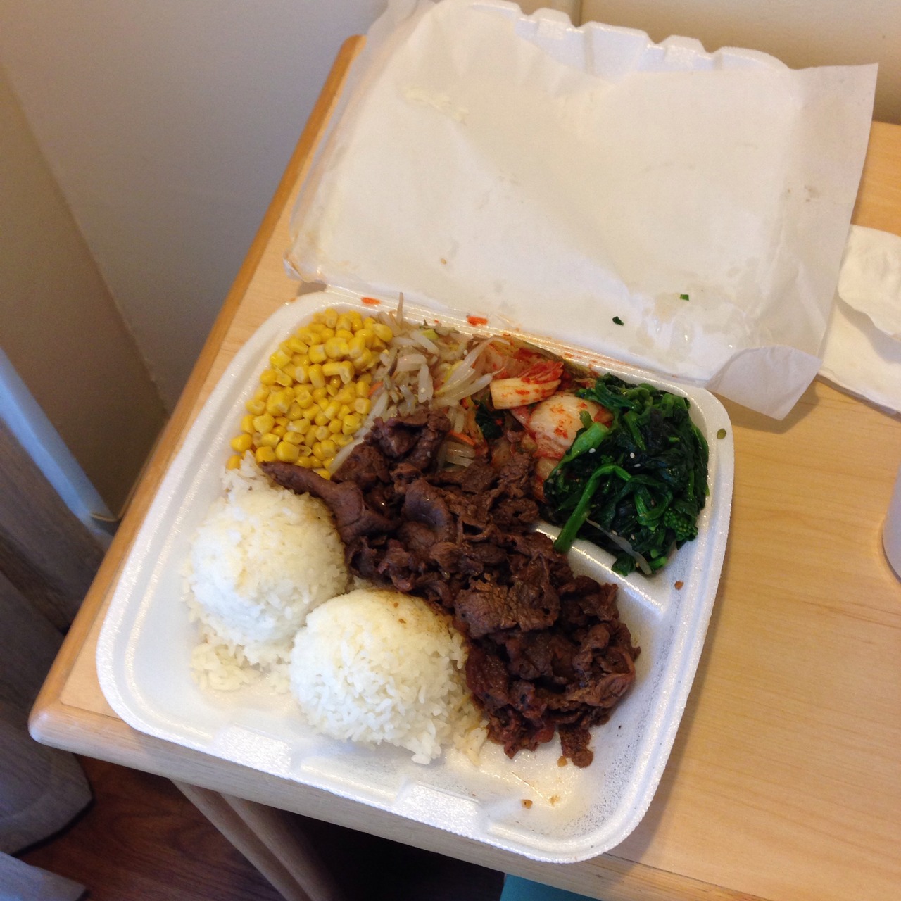 メイン、ライス、お惣菜4品選べます。お惣菜が野菜物が多いので、旅行中の野菜不足が解消できます。