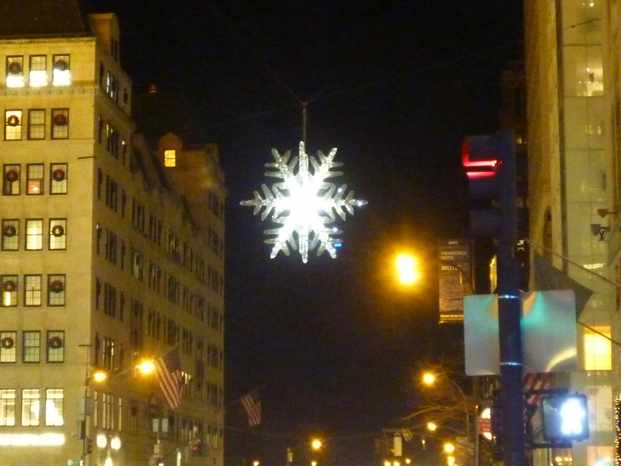 店の前の5番街には、ティファニーらしいクリスマス飾りが下がっていました。