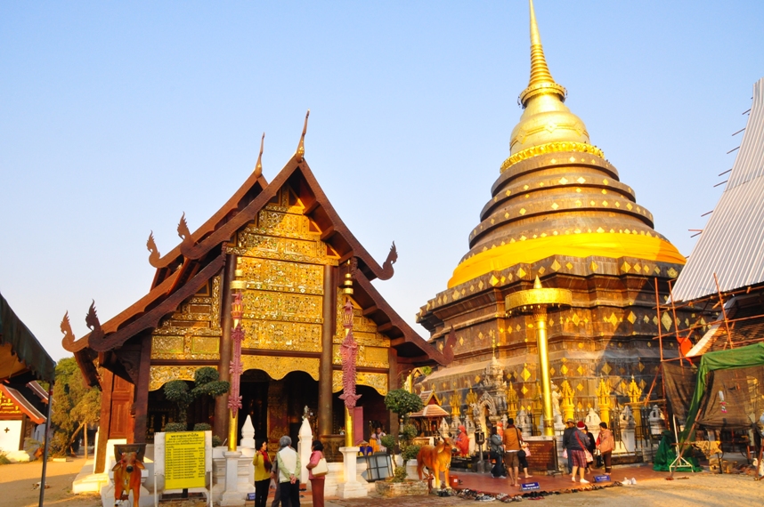 この寺院はラムパーンの街中から離れているので、ソンテオに乗って行く必要がありちょっと不便。寺院自体は一級寺院で立派なモノですが、丁度、私が行った時には、本道の屋根の修復工事が行われており、景観的には、ちょっと残念でした。有名寺院なので、早朝から地元の’観光客やお参りに訪れた人が結構いました。