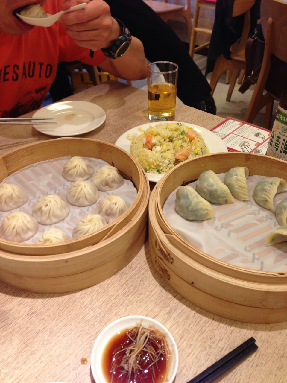台北にきたからには食べないと!お昼よりちょっと早くいったら並ばずに入れました。豆苗の炒め物は少々高いですが、日本の豆苗とは大きさがかなり違い美味しかったです。小籠包は火傷するくらいの熱々を期待したのですが、あまり熱々ではありませんでした。