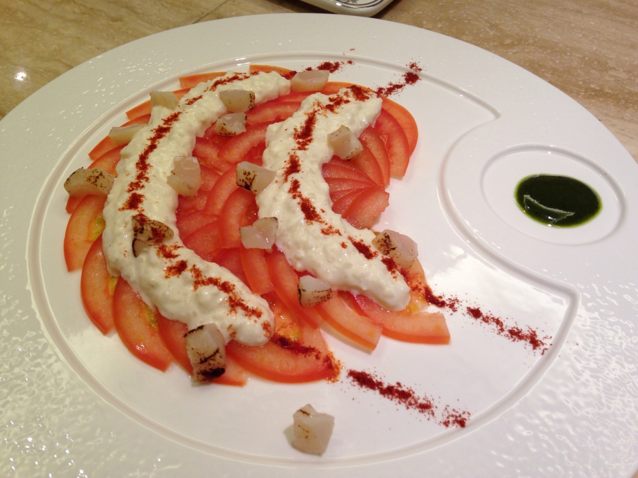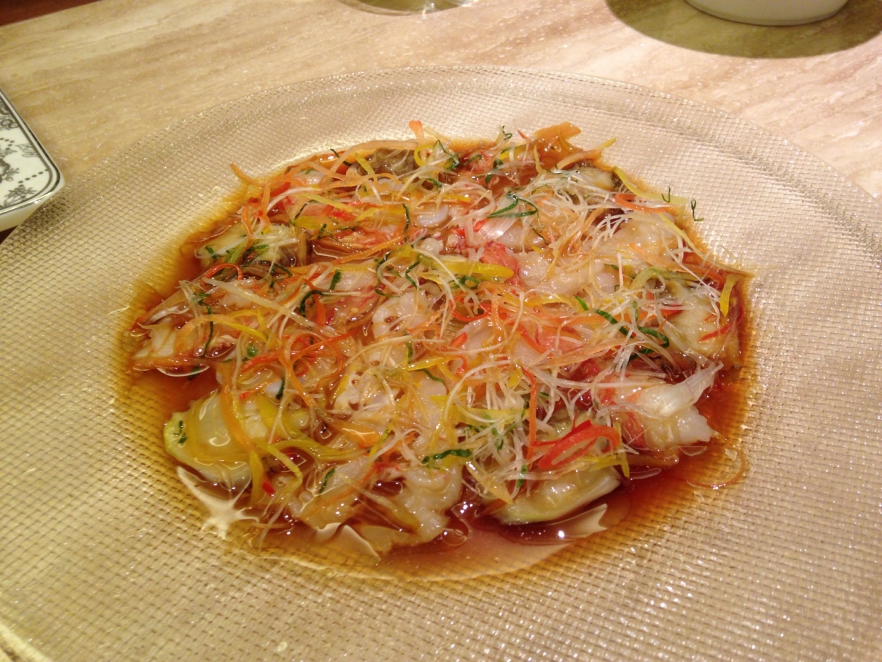 2人で行ったのですが大きな個室に通して頂けました。カルパッチョやエビのカナッペ、部やベース、サラダ、シャコの揚げ炒めなど色々と頼んでみましたがどれも予想に反して(失礼)美味しかったのがビックリでした。サービスは慣れていない感じがしたものの丁寧な対応で好感が持てます。お水が少しピンクがかっているのが可愛いです。ローズウォーター?