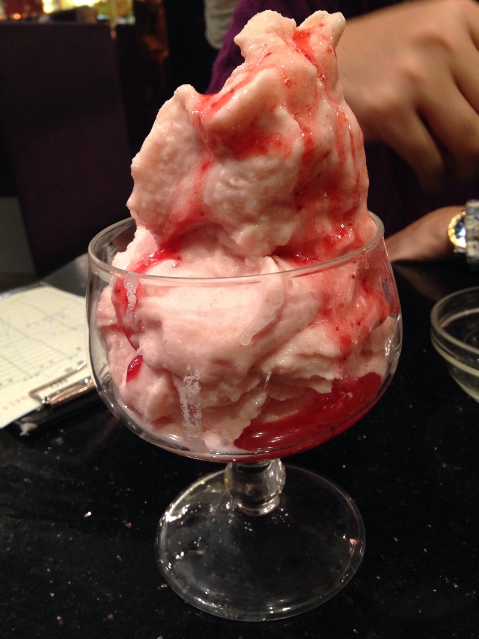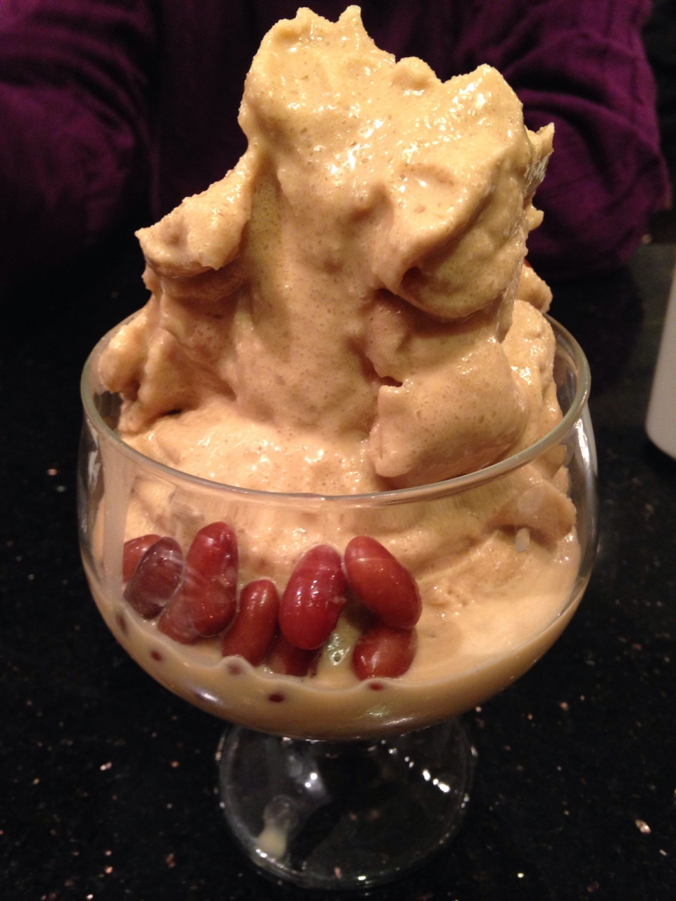 私がここで一番好きなのはピーナツのかき氷なのですが、今回は違うものを食べてみることにしました。ストロベリーヨーグルト風味のかき氷と恋愛かき氷という名前のコーヒー味でピーナツバターがプラスされたようなかき氷を注文。どちらもちょっと味が薄いような気がしました…。しかも量がたっぷりで二人で食べ切れませんでした。二人で一つくらいでちょうど良いかな。