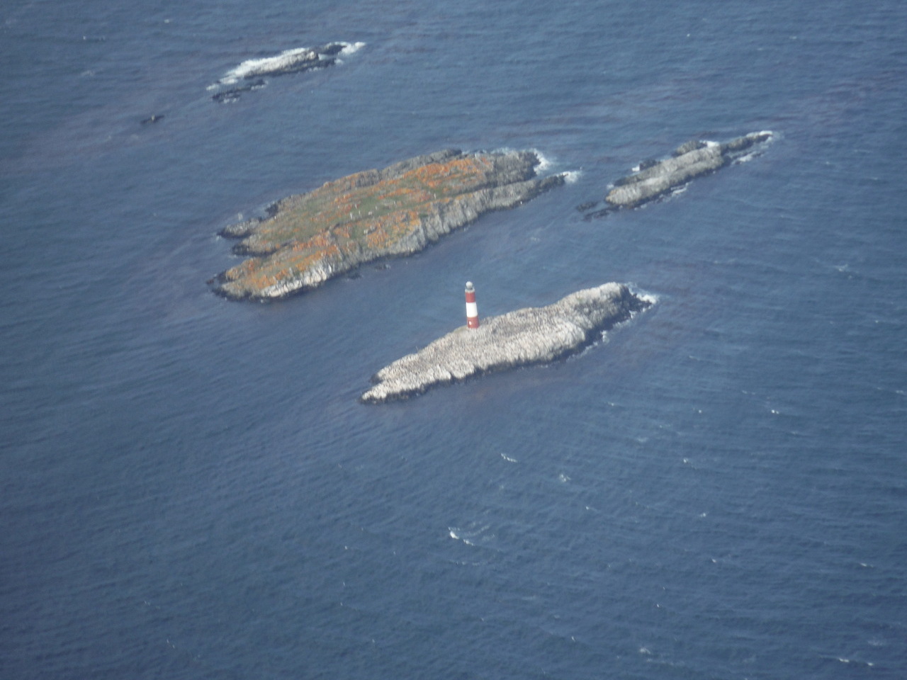 ウスアイワで遊覧飛行をエンジョイしました。我々3人を乗せたセスナは、町外れの小さな飛行場を飛び立ちました。山脈を展望した後、ビーグル水道に入ると眼下に島にぽつんと立つエクレール灯台が見えました。写真がその灯台です。