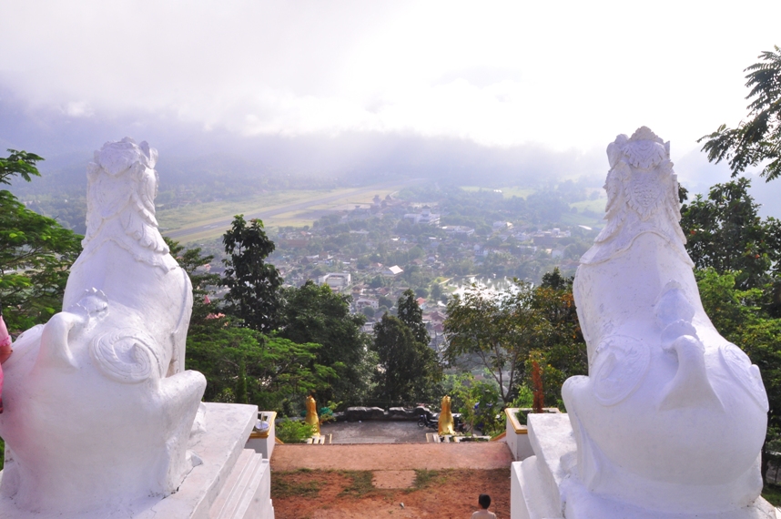 メーホンソンの街にある標高600メートルのドーイ・コー・ムーの山頂に有り、メーホンソンの街を一望出来ます。山頂には、麓から綴れ折の道を登れる他、車やバイクで登れる道も有るようです。メーホンソンは霧の街とも言われており、冬場の早朝は、霧に包まれることが多いです。