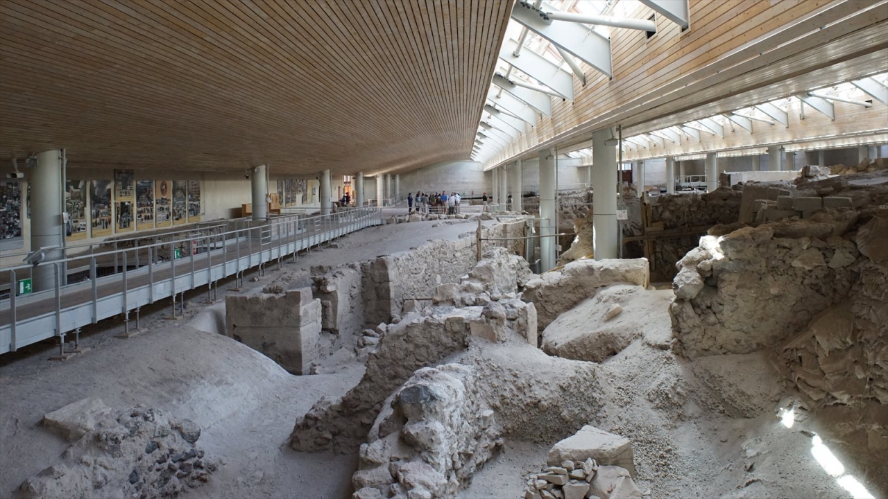 サントリーニ島へ来る一番の目的がここでした。有名な壁画や発掘品などは一切ありませんが、かつての豊かだったにちがいない地中海の生活を偲ぶには十分です。ただ、案内板がわかりづらく「ボクシングする少年」の壁画がどこにあったのか、探し当てるのに苦労しました。