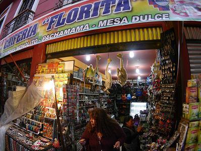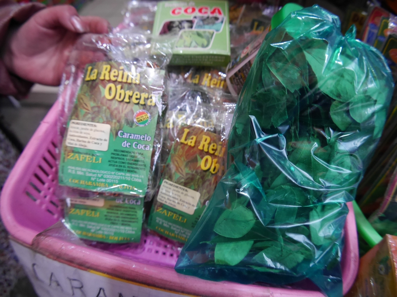 これらのお店では「コカ製品」が店頭に山積みなので、コカの葉っぱとコカの飴玉(すっげぇ不味い)を大量に購入し、さっさと退散.......。