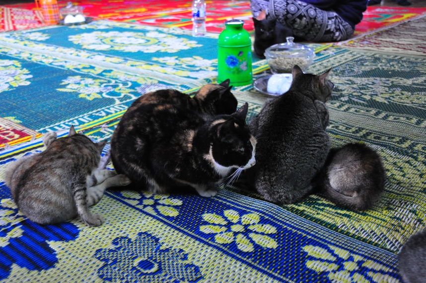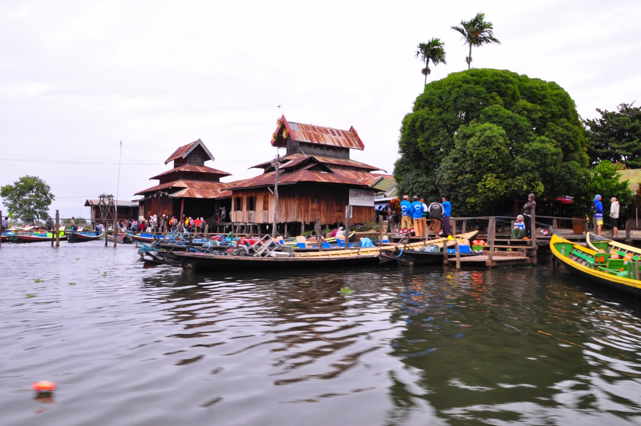 インレー湖をボートで観光すれば、必ずと言って良いほど、連れて行ってくれる定番の観光地。この寺院では、ネコが沢山飼われており、ひょんと飛び跳ねて、僧侶が手にする輪の中をくぐると言う芸をすることで有名ですが、私が行った時には、観光客が手にした輪を一回くぐっただけで、その後は、寝てばかりでした。