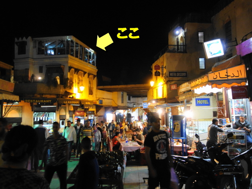 3階建ての建物で、ブー・ジュルード門が見えるテラス席がおススメです。