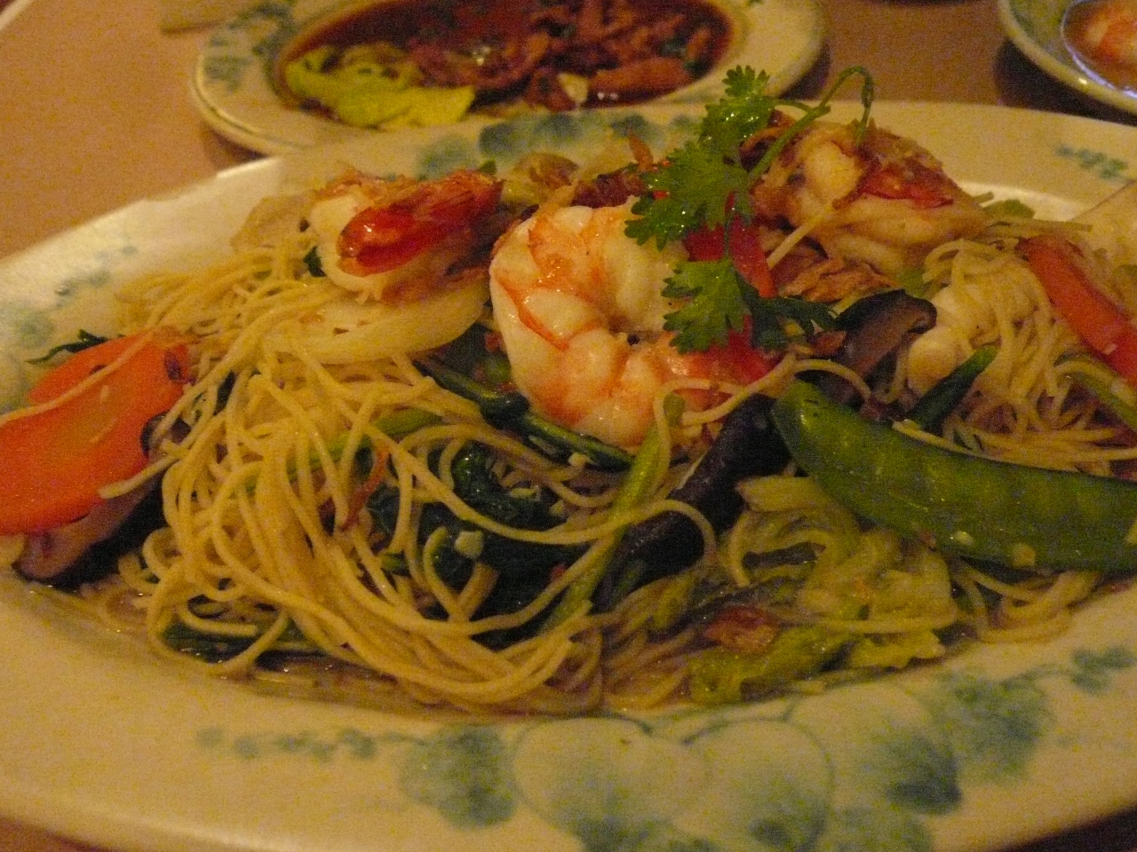 2回目はオーナーに聞き、お勧めを頂きました。エビ料理等、単品を注文。空芯菜等、優しいお味です。