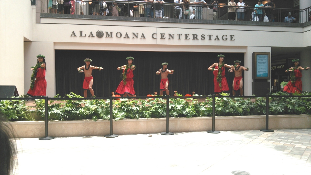1階のセンターステージでは毎日午後1時からハワイアンショーがあります。