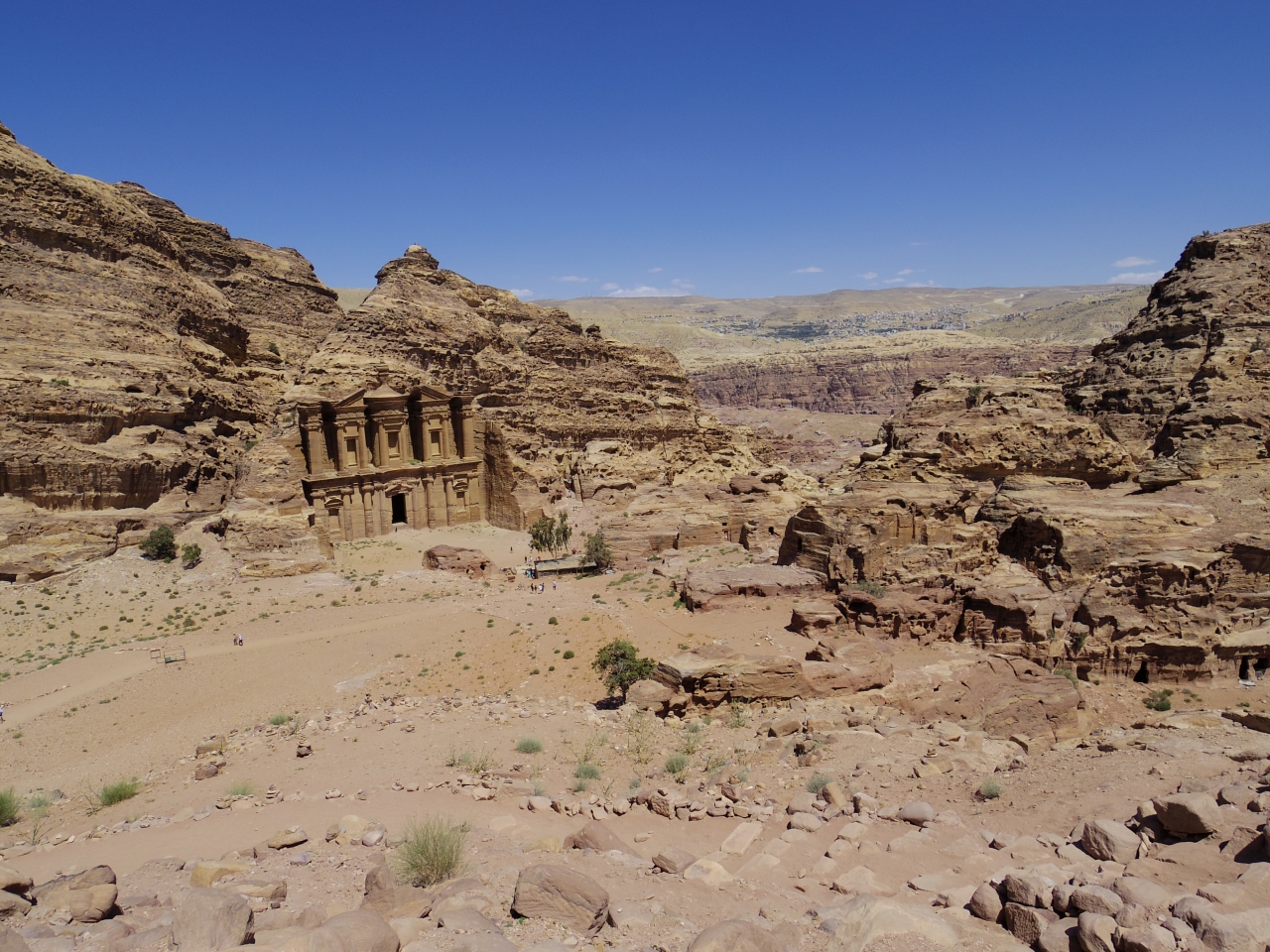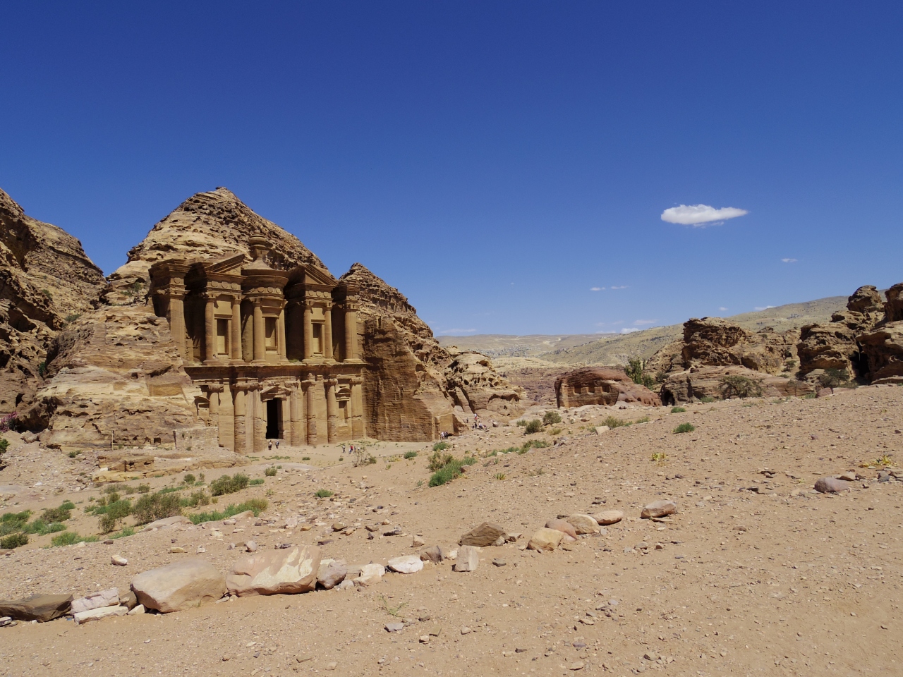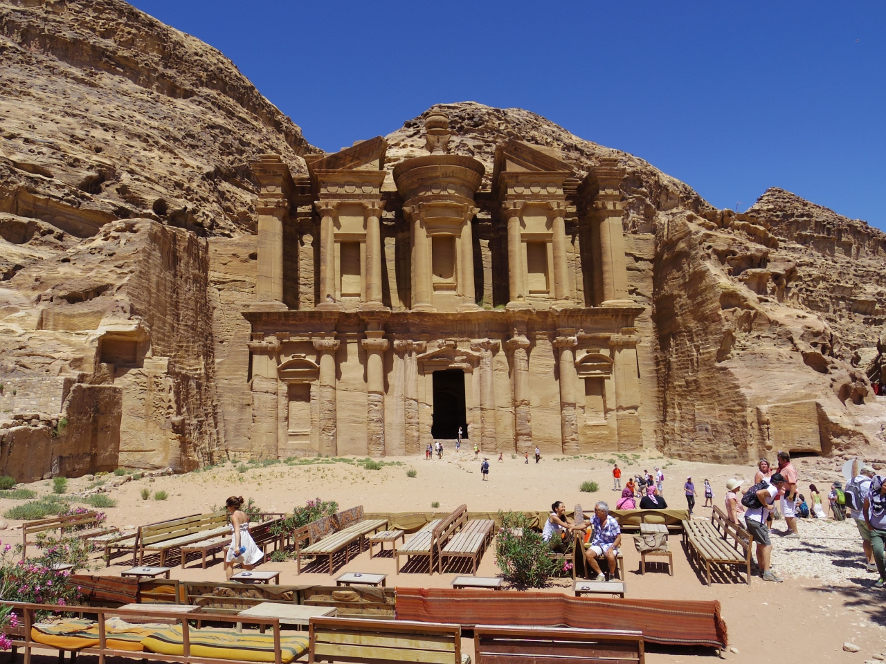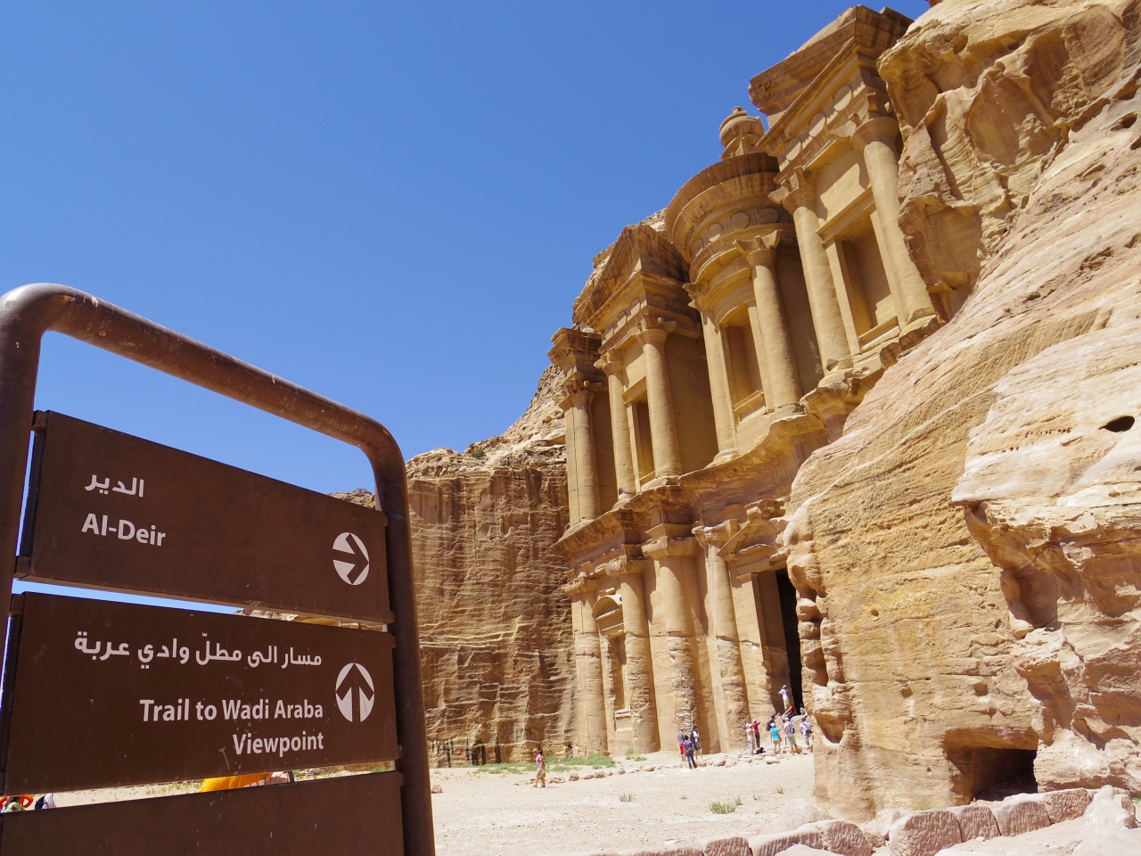 2014のGWにツアーで参加。ペトラ遺跡に来たからにはエドディルまで登る事をおススメするがとてもキツイ。GWとは言え気温はお昼頃で30℃程度で日陰はほぼない。エドディルへの約800段の階段を登り始めて休憩を数回取りながら1時間かかった。(30代女性)リュックに入れてあったペットボトルの水(500ml)は暑さでお湯になっていた。日差し対策と水分は必須。日傘をさしながらでも登れた。ロバでの登り降り(有料)も可能だが、落馬の危険性と揺れによる酔いは自己責任。道にロバの糞が大量に落ちているの踏まないように。
