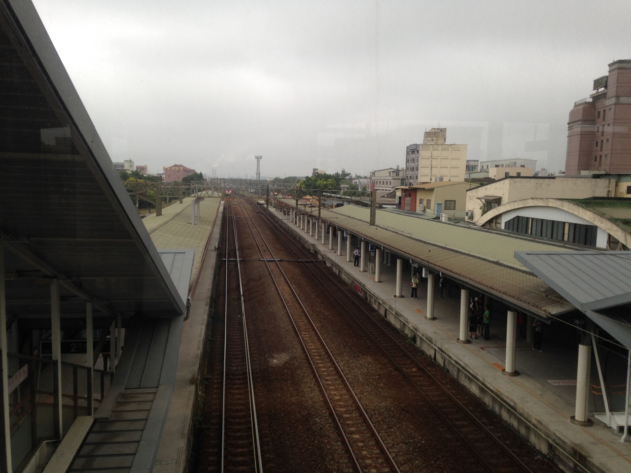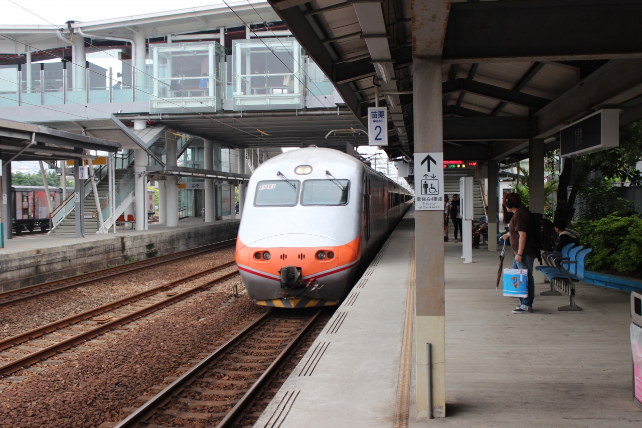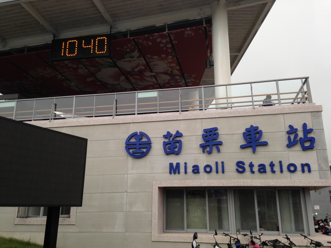台鐵苗栗駅はすべての列車が停車します。駅は橋上駅。線路は地面にあります。駅を東西につなぐ屋根付きブリッジがあり、電車が眺められるようなガラス張りの休憩できる場所が設けられています。雲林県の斗六(ドウリョウ)などと同じく田舎の駅ですが、県を代表する駅だけに、そのがんばりが見えます。