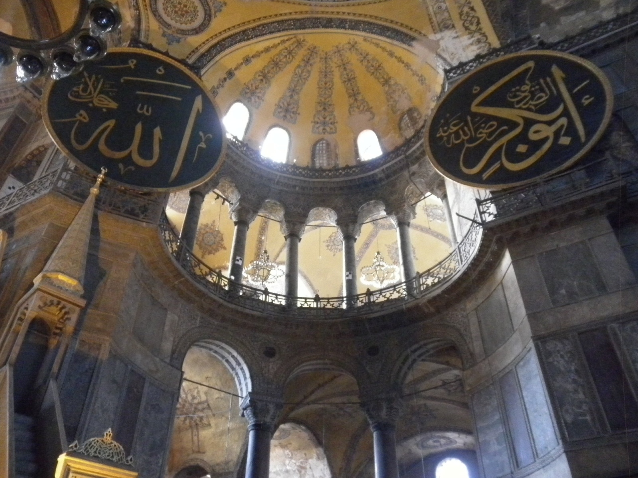 ブルー・モスク、トプカプ宮殿と並んで有名な美術館です。ギリシア正教の大聖堂として建築され、後にイスラム教のモスクとして使用されたという歴史があり、建物内の随所に見れます。残念ながら中の半エリアが修復中でしたが、下から眺めるドームや壁中のモザイク画など見ごたえがありました。