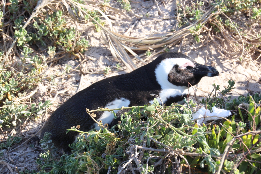 ペンギンで有名なボルターズ・ビーチはケープ半島の観光の定番です。ケープ半島東海岸の古い町サイモンズ・タウンの近くです。保護区域内での見学となります。ここのペンギンは一年中産卵が行われるそうで、営巣して卵を温めている姿もたくさん見られます。