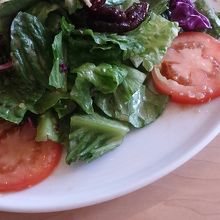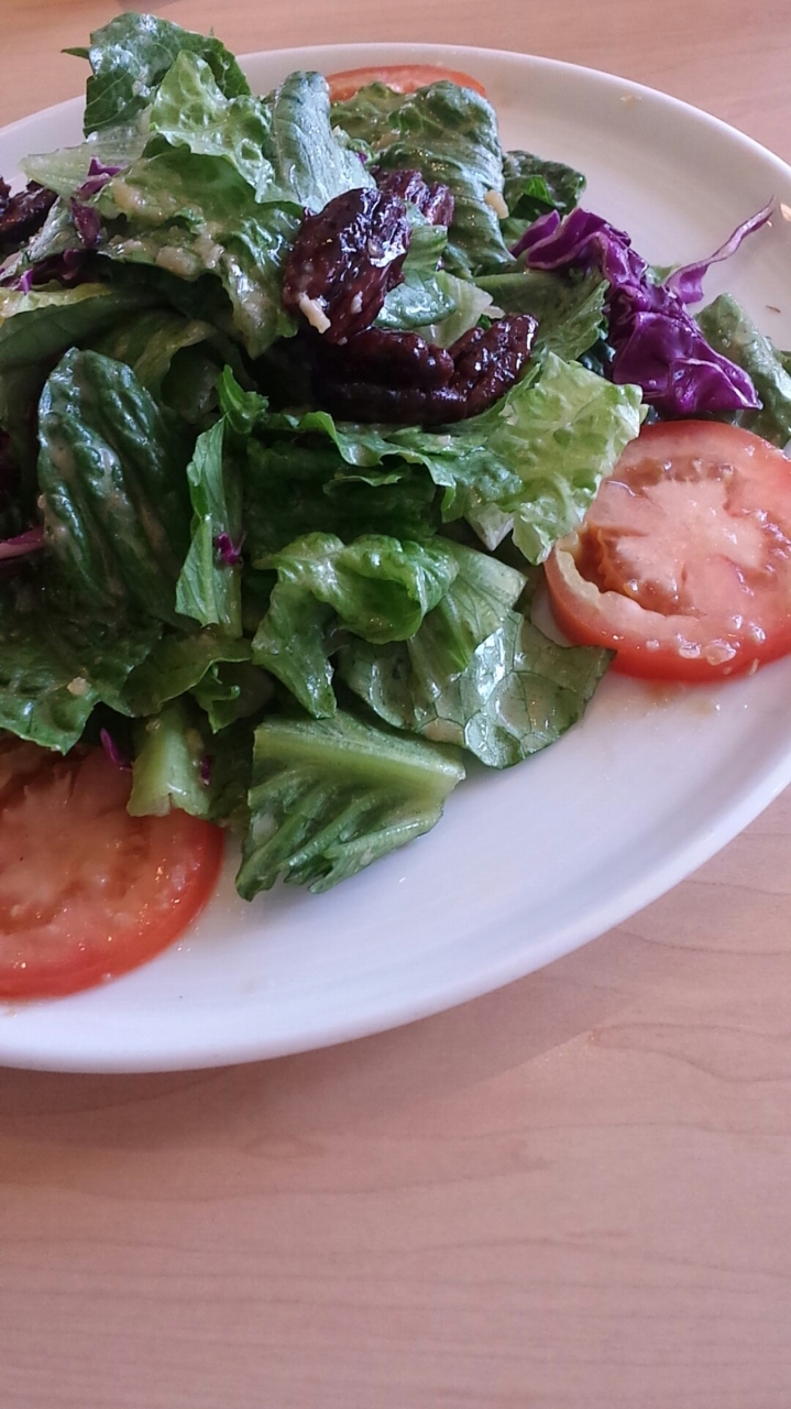 サラダにはレタス、スライストマト、ピーカンナッツが入っています。