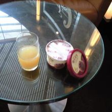 梨のフレッシュジュースとアイスクリームなら在庫十分でした。